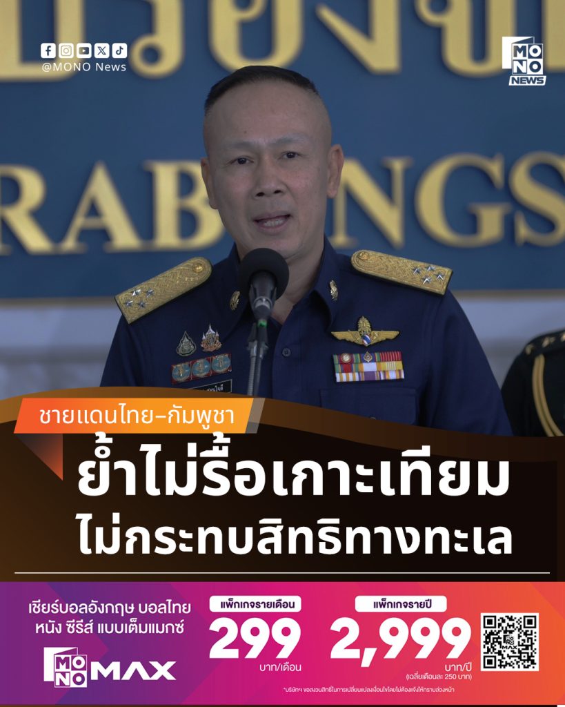 ผู้อำนวยการศูนย์ข่าวสารสถานการณ์ไทย–กัมพูชา ย้ำว่า การไม่ทำลายสิ่งปลูกสร้างในทะเล เป็นการบริหารสถานการณ์บนพื้นฐานกฎหมายระหว่างประเทศ ไม่ใช่การยอมรับสิทธิ พร้อมยืนยันว่า หากสถานการณ์เปลี่ยนแปลง ไทยยังมีเครื่องมือทางกฎหมายและการทูตครบถ้วน โดยไม่จำเป็นต้องเริ่มจากการใช้กำลัง
