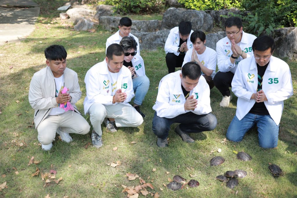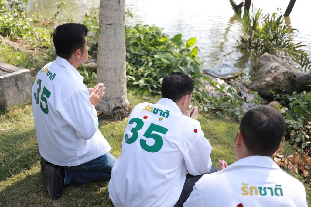 โดยหลังจากทีมพรรครักชาติ เดินตลาดพบปะพี่น้องประชาชนชาวสุราษฎร์ธานีในช่วงเช้าแล้ว ทีมพรรครักชาติได้เดินทางไปยัง ศาลหลักเมืองสุราษฎร์ธานี เพื่อกราบสักการะและลั่นฆ้องยักษ์ เอาฤกษ์เอาชัย เพื่อความเป็นสิริมงคล และเดินทางไปกราบศาลเจ้า ฮกเกี๋ยน เพื่อขอพร หลังจากนั้นเดินทางไปยังสวนสาธารณะเกาะลำพู บริเวณริมแม่น้ำตาปี เพื่อทำบุญปล่อยปลาไหลและปล่อยเต่าคืนสู่ธรรมชาติ เนื่องในวันมาฆบูชา โดยอาจารย์ เจษฏ์ ได้นำคณะ ทีมพรรครักชาติ แผ่เมตตา และอุทิศส่วนบุญส่วนกุศล ให้กับคนที่มีจิตคิดทำลายบ้านเมือง และบิดเบือนประวัติศาสตร์ ความรักชาติ