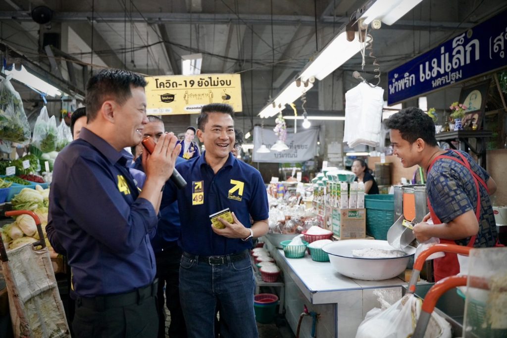 วันนี้ (3 กุมภาพันธ์ 2569) เวลา 07.00 น. ศาสตราจารย์ ดร.สุชัชวีร์ สุวรรณสวัสดิ์ หัวหน้าพรรคไทยก้าวใหม่ และแคนดิเดตนายกรัฐมนตรี พร้อม นายโชติพงศ์ สรรเสริญ ผู้สมัคร สส. กทม. เขต 6 หมายเลข 1 ลงพื้นที่หาเสียงตลาดห้วยขวาง และตลาดดินแดง บรรยากาศเป็นไปอย่างคึกคัก มีพ่อค้าแม่ค้าและประชาชนออกมาจับจ่ายใช้สอยในช่วงเช้าอย่างต่อเนื่อง ขณะเดียวกันมีประชาชนและแฟนคลับเข้ามาทักทาย พูดคุย และขอถ่ายภาพร่วมกับนายสุชัชวีร์อย่างเป็นกันเองตลอดเส้นทางการเดินหาเสียง
