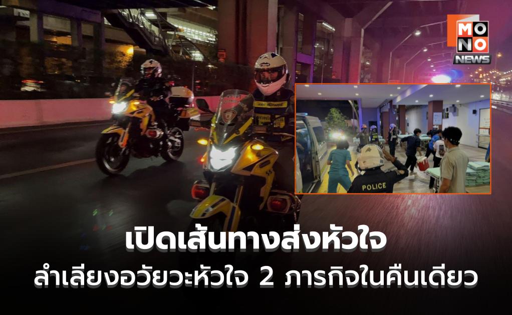 ตำรวจจราจรโครงการพระราชดำริ เปิดเส้นทางจราจรสนับสนุนแพทย์ ลำเลียงอวัยวะหัวใจ 2 ภารกิจในคืนเดียว ส่งถึงโรงพยาบาลทันเวลา ช่วยต่อชีวิตผู้ป่วยสำเร็จ