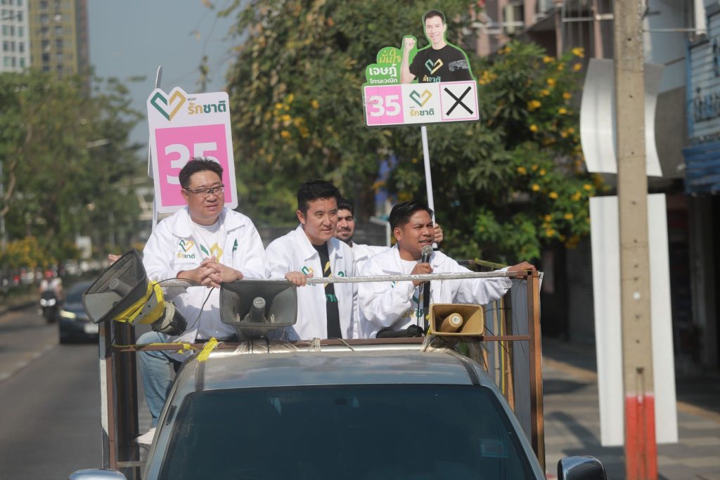 นายชัยวุฒิ ธนาคมานุสรณ์ หัวหน้าพรรครักชาติ (เบอร์ 35) และแคนดิเดตนายกรัฐมนตรี พร้อมด้วย รศ.ดร.เจษฎ์ โทณะวณิก แคนดิเดตนายกรัฐมนตรี และนายเอกพิทยา เอี่ยมคงเอก ที่ปรึกษานโยบายเศรษฐกิจ ผู้สมัคร สส.บัญชีรายชื่อ ลำดับที่ 2 นำทีมพรรครักชาติ ประกอบด้วย ผู้สมัคร สส.แบบแบ่งเขต และบัญชีรายชื่อ รวมถึงคณะกรรมการบริหารพรรค ขึ้นรถแห่ตระเวนรอบกรุงเทพฯ เพื่อหาเสียง แนะนำตัวผู้สมัคร สส.กทม. ทั้ง 23 เขต และหมายเลขพรรค เบอร์ 35