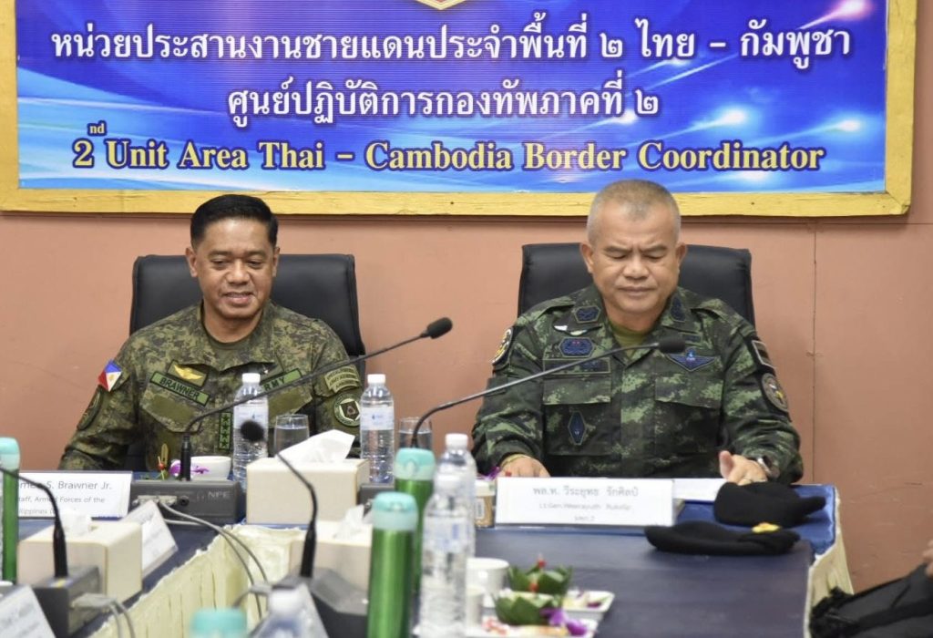 วันที่ 10 กุมภาพันธ์ 2569 ที่ จุดผ่านแดนถาวรช่องจอม อ.กาบเชิง จ.สุรินทร์ พลโท วีระยุทธ รักศิลป์ แม่ทัพภาคที่ 2 พร้อมด้วย พลตรีสมภพ ภาระเวช ผู้บัญชาการกองกำลังสุรนารี พันเอก เกียรติศักดิ์ พรมตวง ผู้บังคับหน่วยพัฒนาการเคลื่อนที่ 54 ร่วมให้การต้อนรับ พลเอก Romeo S. Brawner Jr. เสนาธิการทหารกองทัพฟิลิปปินส์ (เทียบเท่าผู้บัญชาการทหารสูงสุดฟิลิปปินส์) และคณะ ลงพื้นที่รับฟังบรรยายสรุปสถานการณ์ด้านความมั่นคงในพื้นที่ชายแดน รวมถึงปัญหาอาชญากรรมทางไซเบอร์และการหลอกลวงออนไลน์ (Cyber Crime/Scammer) พร้อมทั้งตรวจภูมิประเทศและแนวทางการปฏิบัติงานของหน่วยในพื้นที่จริง เพื่อแลกเปลี่ยนข้อมูล ประสบการณ์ และแนวทางการประสานความร่วมมือด้านความมั่นคงระหว่างประเทศ