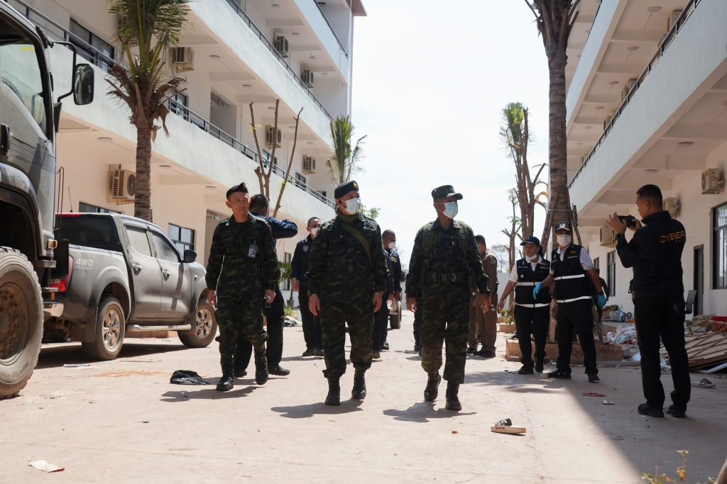 โดยมีการปฏิบัติที่สำคัญ ซึ่งคณะเจ้าหน้าที่ได้แบ่งกำลังเป็น 4 ชุด เพื่อเข้าตรวจสอบพื้นที่อย่างครอบคลุม ทั้งนี้ จากการเข้าตรวจสอบ พบว่า พื้นที่ดังกล่าวเคยถูกใช้เป็นฐานปฏิบัติการของขบวนการสแกมเมอร์ขนาดใหญ่ โดยพบอุปกรณ์และเอกสารที่ใช้ในการหลอกลวงเหยื่อจำนวนมาก อาทิ การแอบอ้างเป็นเจ้าหน้าที่รัฐ การชักชวนลงทุน และการหลอกลวงในรูปแบบต่าง ๆ โดยครอบคลุมหลายประเทศ นอกจากนี้ยังพบการจัดฉากสถานที่เลียนแบบหน่วยงานของรัฐและสถาบันการเงินของต่างประเทศ เพื่อใช้ในการหลอกลวงเหยื่อ