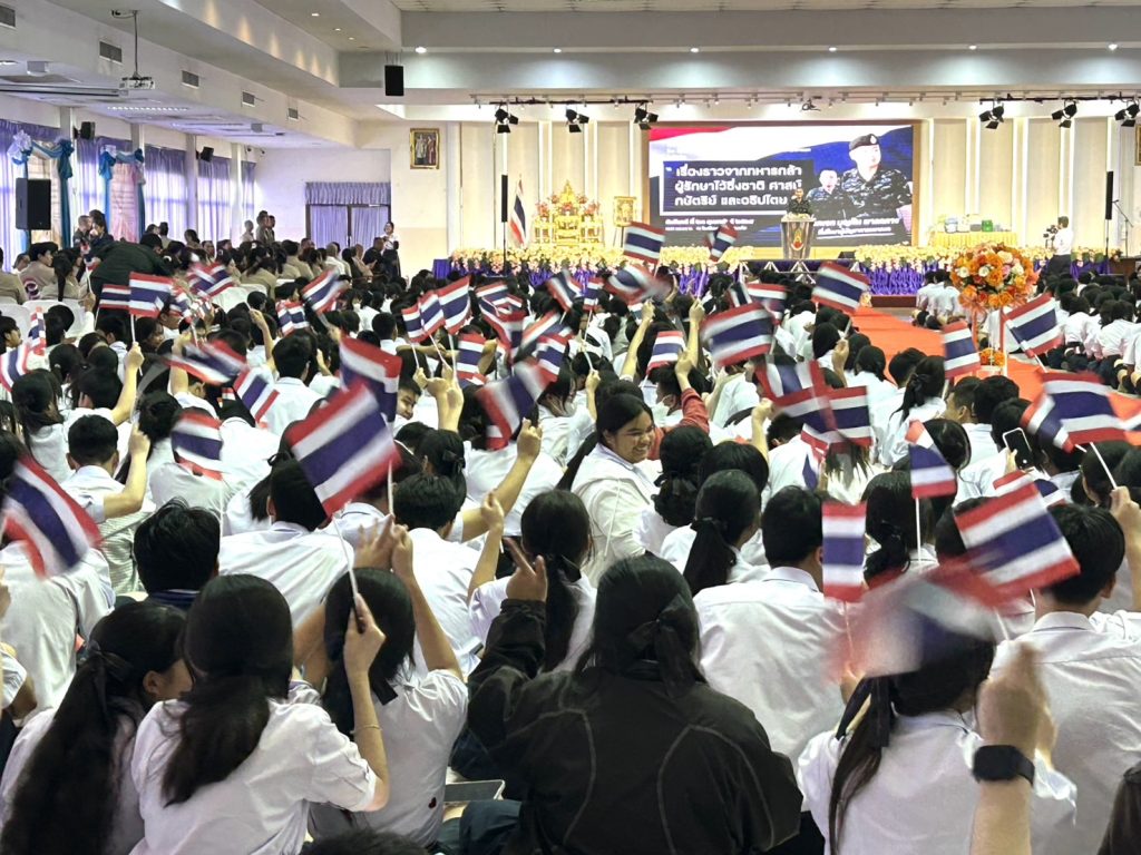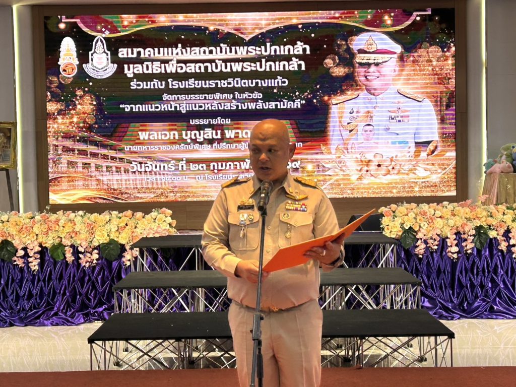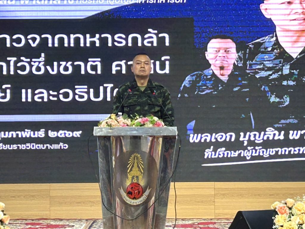 เมื่อเวลา 15.00 น. วันที่ 23 ก.พ.2569 ที่โรงเรียนราชวินิตบางแก้ว ในพระบรมราชูปภัมถ์ พล.อ.บุญสิน พาดกลาง ที่ปรึกษาผู้บัญชาการทหารบก และ อดีตแม่ทัพภาคที่2 บรรยายพิเศษหัวข้อ การสร้างจิตสํานึก รักชาติศาสนา พระมหากษัตริย์ และการรักษาไว้ซึ่งอธิปไตย โดยมี นายศุภากร เมฆขยาย ผู้อํานวยการฯให้การต้อนรับ พร้อมด้วย นางสาวบุษรา พาคํา รองผู้อํานวยการฯ นางพัชรีพร ชูชาติ รองผู้อํานวยการฯ นางนงค์นุช ภูมี รองผู้อํานวยการฯ นายธพลศจกรณ์ พิมพิชัยธกุล รองผู้อํานวยการฯ