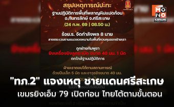 “กองทัพภาคที่ 2” แจงเหตุ ชายแดนศรีสะเกษ เขมรยิงเอ็ม 79 เปิดก่อน ไทยโต้ตามขั้นตอน ไร้เจ็บ-เสียหาย