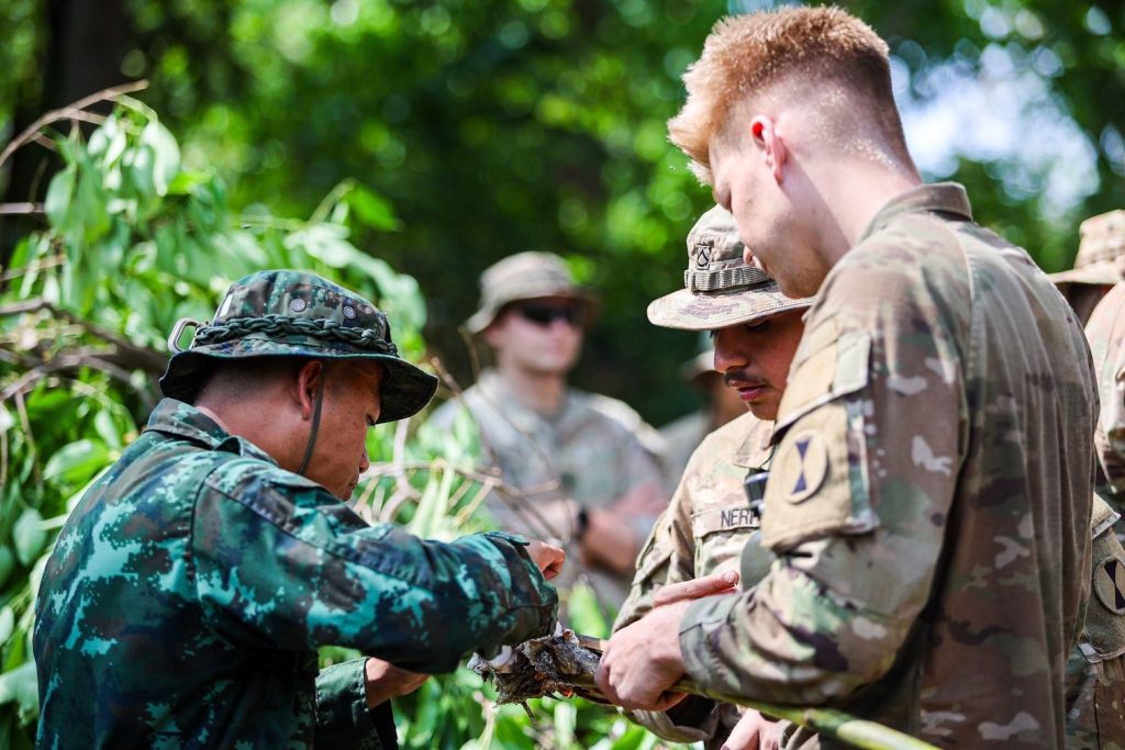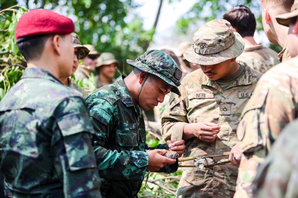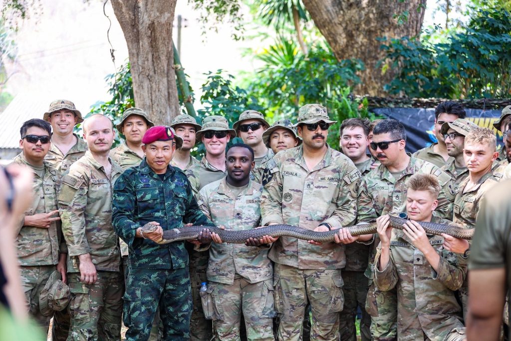 การฝึกดำรงชีพในป่า (Jungle Survival) หนึ่งในไฮไลต์สำคัญของการฝึก Cobra Gold 2026 ได้รับความสนใจจากกำลังพลนานาชาติ โดยเป็นการถ่ายทอดทักษะเอาตัวรอดในสภาพแวดล้อมป่าฝนเขตร้อนของไทย ดำเนินการโดยโรงเรียนสงครามพิเศษ ศูนย์สงครามพิเศษ
