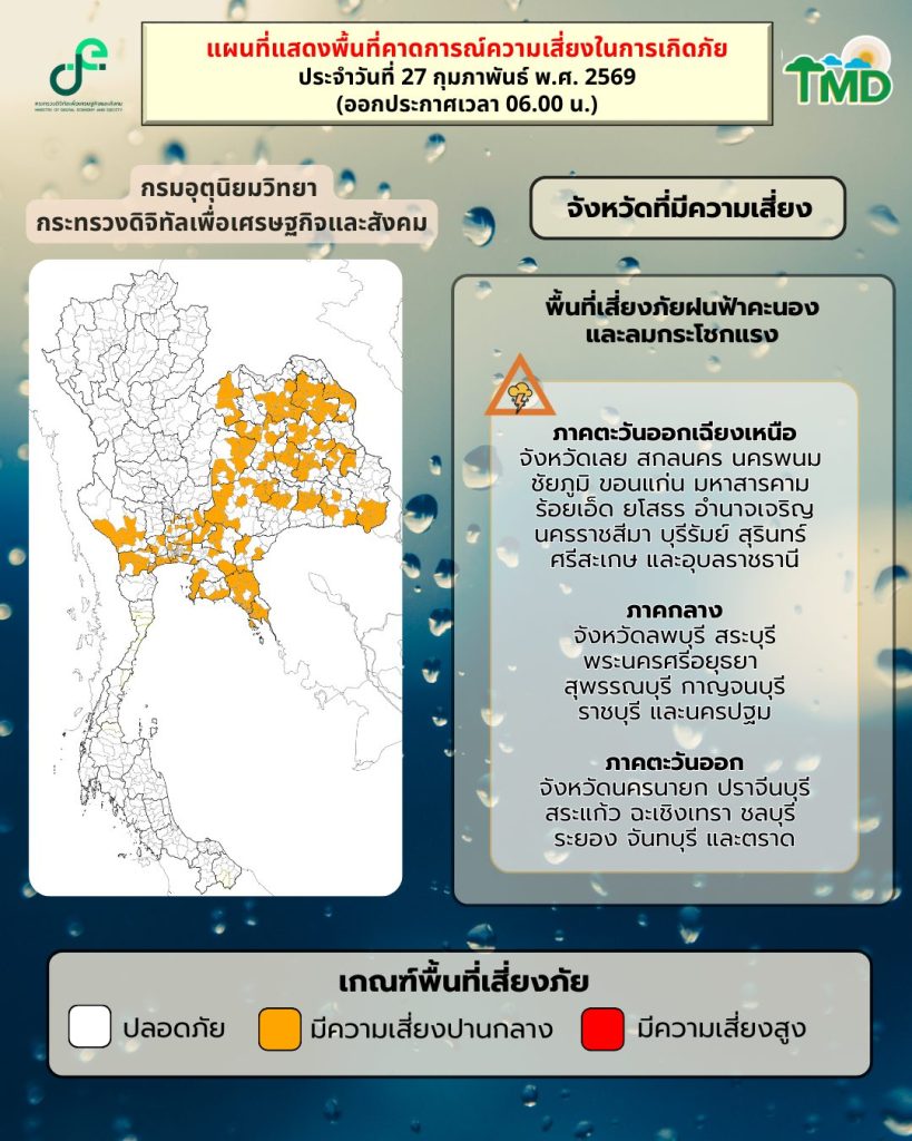 - มีฝนฟ้าคะนอง ร้อยละ 30 ของพื้นที่