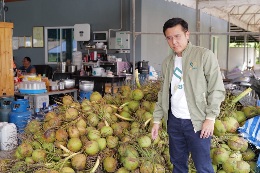 “จากที่ได้มาติดตามปัญหาราคามะพร้าวน้ำหอมตกต่ำนะครับ พบว่าวันนี้เกษตรกรเดือดร้อนมาก เพราะราคาซื้อที่สวน โดนกดราคาจากล้ง จากโรงงานส่งออก ที่เรียกว่าเป็นกลุ่มทุนต่างชาติ ทุนจีนเนี่ยแหละครับ มาเอารัดเอาเปรียบพี่น้องเกษตรกรนะครับ” นายชัยวุฒิ กล่าว