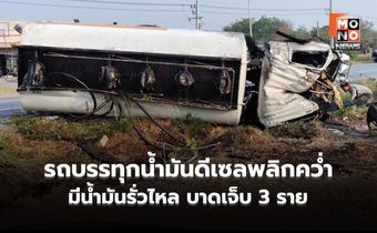 วันนี้ 23 มีนาคม 2569 ตำรวจทางหลวงบ้านส้ม อ.โนนสูง จ.นครราชสีมา ได้รับแจ้งเกิดอุบัติเหตุรถบรรทุกน้ำมันพลิกคว่ำ ที่บริเวณถนนมิตรภาพขาออกนครราชสีมา ฝั่งขาเข้าขอนแก่น ช่วงหลักกิโลเมตรที่ 207-208 ก่อนถึงแยกไฟแดงบ้านวัด อ.คง จ.นครราชสีมา มีผู้ได้รับบาดเจ็บจำนวน 3 ราย
