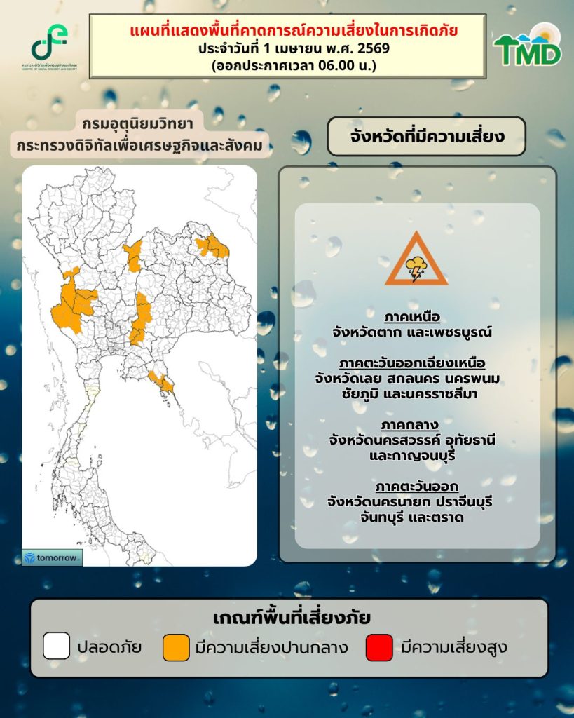 - อากาศร้อนในตอนกลางวัน โดยมีฝนฟ้าคะนอง ร้อยละ 30 ของพื้นที่
