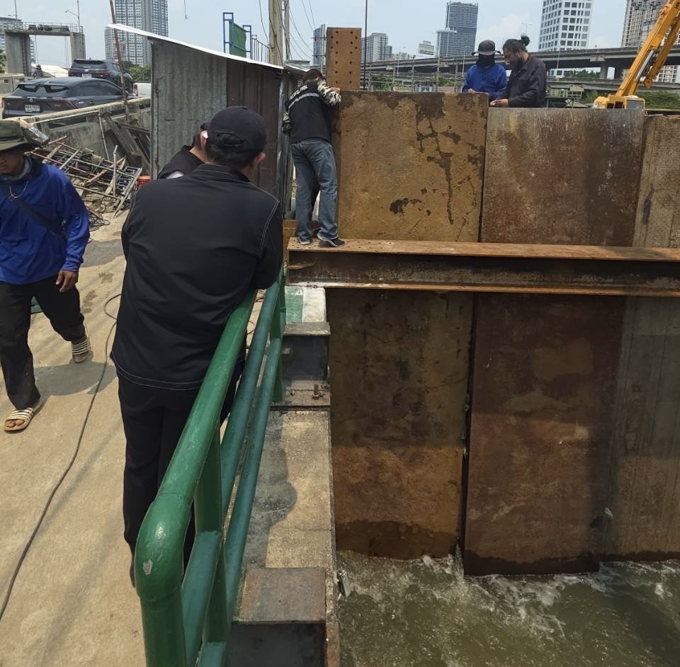 ทั้งนี้ เจ้าหน้าที่ได้เร่งเข้าควบคุมสถานการณ์และดำเนินการซ่อมแซมผนังกั้นน้ำที่ชำรุด โดยมีการเปลี่ยนถุงบิ๊กแบ็คและติดตั้งแผ่นเหล็กเสริมความแข็งแรง เพื่อป้องกันน้ำทะลักซ้ำ โดยตั้งเป้าแล้วเสร็จภายในวันเดียวกัน ภายใต้การควบคุมงานของสำนักการระบายน้ำ กรุงเทพมหานคร