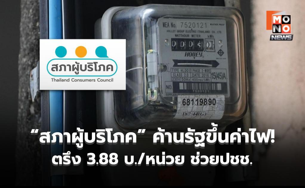 สภาผู้บริโภคค้านรัฐขึ้นค่าไฟ! ตรึง 3.88 บาท/หน่วย ลดภาระประชาชน