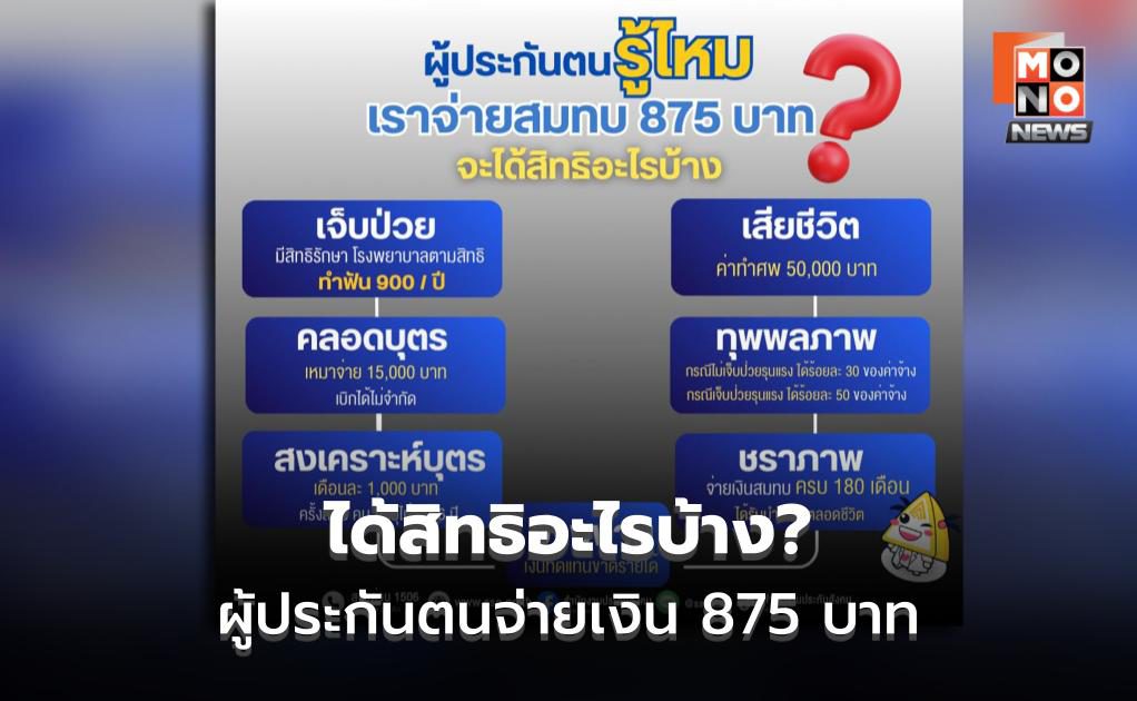 “สปส” แจงยิบ! ผู้ประกันตนจ่ายเงิน 875 บาท จะได้สิทธิอะไรบ้าง? สำนักงานประกันสังคม แจงรายละเอียด สำหรับผู้ที่มีค่าจ้างตั้งแต่ 17,500 บาทขึ้นไป จะส่งเงินสมทบสูงสุดที่ 875 บาทต่อเดือน ส่วนผู้ที่มีค่าจ้างไม .. 27 ม.ค. 2026 | ข่าวทั่วไป