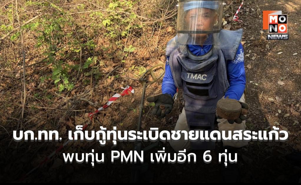 เจออีก! บก.ทท. ลุยเก็บกู้ทุ่นระเบิดชายแดนสระแก้ว พบทุ่น PMN เพิ่ม 6 ทุ่น วันที่ 16 มีนาคม 2569 กองบัญชาการกองทัพไทย โดย ศูนย์ปฏิบัติการทุ่นระเบิดแห่งชาติ (ศทช.) หน่วยปฏิบัติการทุ่นระเบิดด้านมนุษยธรรมที่ 1 การปฏิบั .. 16 มี.ค. 2026 | ข่าวทั่วไป