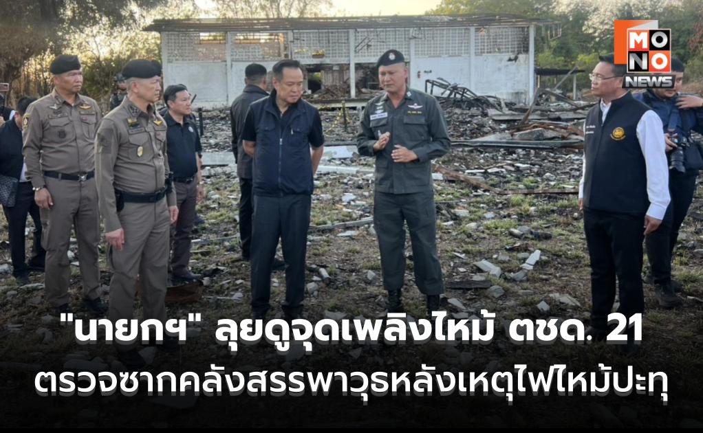 “นายกฯ” ลุยดูจุดเพลิงไหม้ ตชด. 21 ตรวจซากคลังสรรพาวุธหลังเหตุไฟไหม้ปะทุ วันที่ 1 มีนาคม 2569 เมื่อเวลา 17.40 น. นายอนุทิน ชาญวีรกูล นายกรัฐมนตรี พร้อมคณะ ได้ลงพื้นที่ไปยังคลังสรรพาวุธ กองบังคับการตำรวจตระเวนชายแด .. 01 มี.ค. 2026 | ข่าวการเมือง
