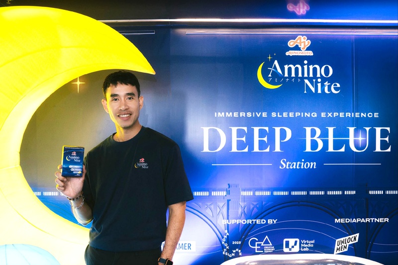 นายวันนเรศวร์ สุขีลักษณ์ ผู้จัดการฝ่ายธุรกิจใหม่ บริษัท อายิโนะโมะโต๊ะ (ประเทศไทย) จำกัด กล่าวว่า “อายิโนะโมะโต๊ะ มุ่งมั่นที่จะยกระดับคุณภาพชีวิตของผู้บริโภคชาวไทยด้วยนวัตกรรมที่เกิดจากองค์ความรู้ด้าน “AminoScience” พัฒนาเป็นผลิตภัณฑ์เสริมอาหาร “อายิโนะโมะโต๊ะ อะมิโนไนท์” เอกสิทธิ์เฉพาะอายิโนะโมะโต๊ะ สอดคล้องกับเป้าหมายที่สำคัญของกลุ่มบริษัทอายิโนะโมะโต๊ะและวิสัยทัศน์ในการสร้างความกินดีมีสุข (Eat Well, Live Well.) และสร้างสุขภาพที่ดีให้กับคนไทย ในปีนี้ อายิโนะโมะโต๊ะได้ร่วมมือกับงาน Bangkok Design Week 2025 เปิดตัวโปรเจกต์ไฮไลท์สุดเอ็กซ์คลูซีฟ “Deep Blue Station – Immersive Sleeping Experience” presented by Ajinomoto AminoNite” นำเสนอประสบการณ์ Wellness Entertainment แบบ Immersive ที่ผสมผสานความผ่อนคลายและความบันเทิงเข้าไว้ด้วยกัน ผู้เข้าร่วมจะได้สัมผัสประสบการณ์หลากหลายตลอด 60 นาที แห่งการฟื้นฟูก้าวสู่โลกเสมือนที่ออกแบบมาอย่างพิถีพิถัน ดื่มด่ำกับวิวเสมือนจริงที่ทอดยาวตลอดเส้นทาง พร้อมเสียงเพลงและกลิ่นหอมละมุนที่ช่วยคลายความเครียด ปลอบประโลมจิตใจสร้างความสงบผ่อนคลาย และช่วยเสริมประสบการณ์การนอนที่ดีโดยทุกองค์ประกอบตั้งแต่กิจกรรมเสริมสร้างสมาธิด้วยเทคโนโลยีแสงและเสียง ไปจนถึงการเรียนรู้เคล็ดลับเพื่อการนอนหลับที่มีคุณภาพ ถูกออกแบบให้สอดคล้องกับแนวคิดของงาน Bangkok Design Week 2025 ที่มุ่งสร้างความสมดุลระหว่างนวัตกรรมและความยั่งยืน”