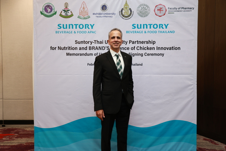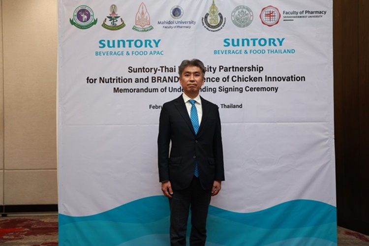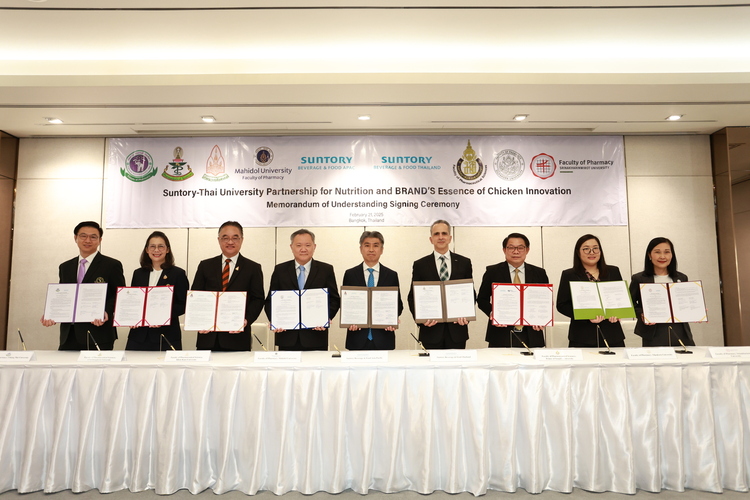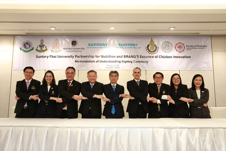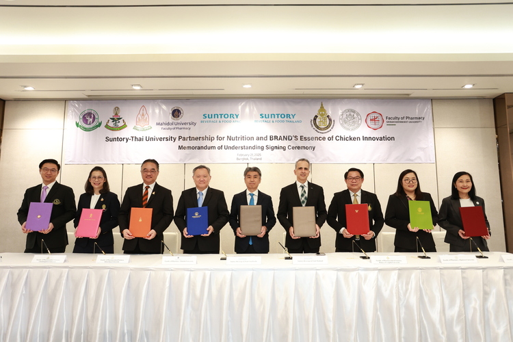 บริษัท ซันโทรี่ เบเวอเรจ แอนด์ ฟู้ด เอเชีย แปซิฟิก (SBFAP) สำนักงานใหญ่ของ ซันโทรี่ เบเวอเรจ แอนด์ ฟู้ด ในภูมิภาคเอเชีย ซึ่งตั้งอยู่ ณ ประเทศสิงคโปร์ พร้อมการสนับสนุนจาก บริษัท ซันโทรี่ เบเวอเรจ แอนด์ ฟู้ด (ประเทศไทย) จำกัด (SBFT) ผู้นำตลาดอาหารเสริมสุขภาพภายใต้ตราผลิตภัณฑ์แบรนด์ในประเทศไทยและภูมิภาคเอเชีย จัดพิธีลงนามในบันทึกข้อตกลงความร่วมมือ (MOU) กับคณะเภสัชศาสตร์จาก 7 มหาวิทยาลัยชั้นนำของไทย ภายใต้โครงการความร่วมมืองานวิจัยด้านโภชนาการ (Research Collaboration on Nutrition Project) เพื่อพัฒนาองค์ความรู้ด้านโภชนาการผ่านการวิจัยและการแลกเปลี่ยนความรู้ทางวิทยาศาสตร์ โดยเน้นศึกษาประสิทธิภาพของซุปไก่สกัดด้านการชะลออายุทางชีวภาพ หรือ Biological Aging เพื่อตอบรับทิศทางประชากรศาสตร์ในประเทศไทยที่ก้าวสู่สังคมผู้สูงอายุ และแนวโน้มของผู้บริโภคที่ให้ความสำคัญกับด้านสุขภาพเพิ่มขึ้น ณ โรงแรมชาเทรียม ริเวอร์ไซด์ กรุงเทพฯ เมื่อวันที่ 21 กุมภาพันธ์ 2568