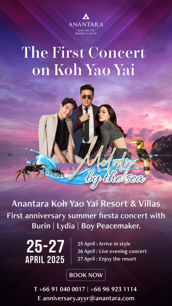 ดูข้อมูลเพิ่มเติมได้ที่ www.anantara.com/en/koh-yao-yai-phuket/offers/melody-by-the-sea-concert