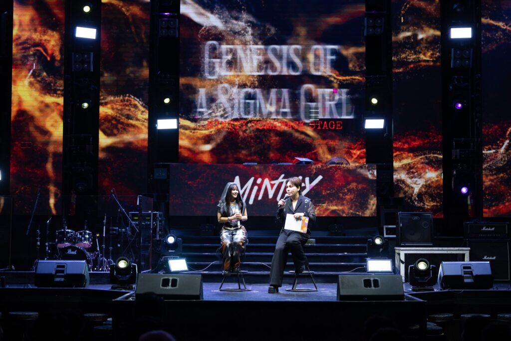 “MINTTY”ให้สัมภาษณ์บนเวทีถึงการคัมแบควงการเพลงว่า “การคัมแบคครั้งนี้พิเศษมาก เพราะหนูเลือก Sigma Girl เป็นเพลงเปิดตัว มันสะท้อนความมั่นใจและตัวตนของเราชัดเจนที่สุด มิ้นท์อยากให้ทุกคนรู้สึกกล้าที่จะเป็นตัวเองและไม่ต้องตามใครค่ะ “นอกจากนี้เธอยังกล่าวถึง SIGMA GIRL ซิงเกิลคัมแบคของเธอและการทำงานนี้ที่มีแทบจะทุกอารณ์อยู่ในกระบวนการก่อนจะสำเร็จออกมาอย่างที่เห็นกันว่า “สำหรับการคัมแบคครั้งนี้ หนูวางคอนเซปต์ ตั้งแต่ขั้นตอนแต่งเพลง โปรดิวซ์ ไปจนถึงการออกแบบท่าเต้น ทุกอย่างถูกคิดมาอย่างตั้งใจมาก เพื่อสะท้อนตัวตนของ มิ้นท์ให้ชัดเจนที่สุด เราอยากส่งต่อพลังให้กับทุกคนที่กำลังค้นหาความมั่นใจในตัวเอง ว่าทุกคนสามารถเป็นตัวของตัวเองได้อย่างภาคภูมิใจ” และอีกหนึ่งความพิเศษในงานนี้ผู้ร่วมงานนั้นยังได้ลุ้นแจกของรางวัล พร้อมลายเซ็นต์ Mintty ด้วย และเปิดท้ายกันที่การเก็บภาพความประทับใจกับ “GENESIS OF A SIGMA GIRL”