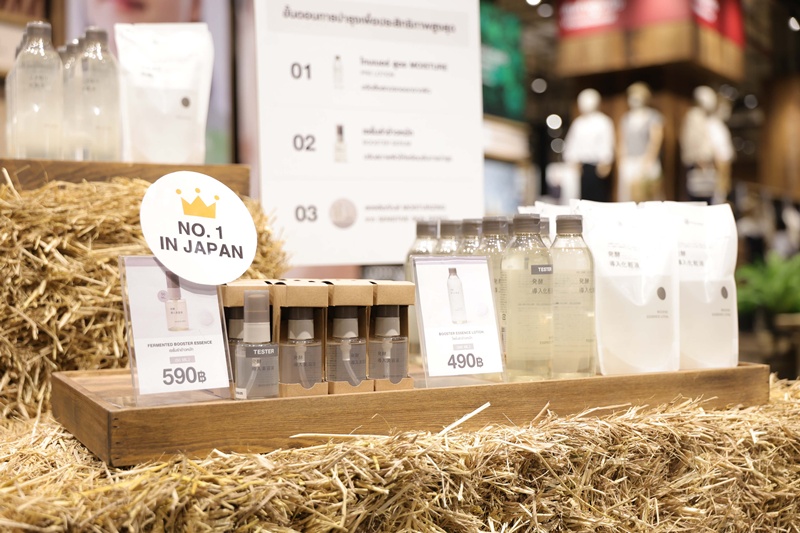 และอีกหนึ่งกลุ่มผลิตภัณฑ์สกินแคร์ใหม่จากแบรนด์ มูจิ (MUJI) คือ Booster Series ผลิตภัณฑ์บำรุงผิวสูตรเข้มข้น ที่เน้นการฟื้นบำรุงผิวอย่างล้ำลึก ด้วยสารสกัดจากรำข้าวหมักเข้มข้นกว่า 65% ซึ่งผ่านกระบวนการพัฒนาจากรำข้าวท้องถิ่นในจังหวัดยามากาตะ ประเทศญี่ปุ่น ผสานคุณค่ากับเซราไมด์เพื่อเพิ่มความชุ่มชื้นอย่างล้ำลึกและยาวนาน พร้อมเสริมประสิทธิภาพในการเปิดผิวให้เตรียมพร้อมรับการบำรุงในขั้นตอนถัดไป ปลุกผิวให้ตื่น ฟื้นฟูผิวจากความล้าและแห้งกร้าน ลดความตึงผิวหลังล้างหน้า และปรับสมดุลผิวให้เรียบเนียนนุ่มอย่างเป็นธรรมชาติ เหมาะสำหรับใช้ก่อนโลชั่นหรือโทนเนอร์ให้พร้อมเปิดรับความชุ่มชื้นได้อย่างเต็มที่ ทั้งยังผ่านการทดสอบว่าไม่ก่อให้เกิดอาการแพ้หรือระคายเคือง ซึ่งประกอบไปด้วย 2 ผลิตภัณฑ์ คือ เซรั่มรำข้าวหมัก (Booster Serum) เซรั่มสูตรเข้มข้นด้วยส่วนผสมจากธรรมชาติ 100% ที่มียอดขายอันดับ 1 ที่มูจิญี่ปุ่น ด้วยยอดขายกว่า 500,000 ขวดภายในเวลา 1 สัปดาห์ โดดเด่นด้วยส่วนผสมของน้ำหมักรำข้าวเข้มข้นกว่า 65% โดยปราศจากส่วนผสมของน้ำ อุดมไปด้วยวิตามิน 7 ชนิดและแร่ธาตุ 8 ชนิด ช่วยเตรียมผิวให้พร้อมรับการบำรุงได้อย่างมีประสิทธิภาพเมื่อใช้ก่อนลงโทนเนอร์ พร้อมฟื้นฟูผิวให้เนียนนุ่มและสมดุลจากภายในสู่ภายนอก มีจำหน่ายที่ปริมาณ 50 มิลลิลิตร ราคา 590 บาท และ โลชั่นรำข้าวหมัก (Booster Essence Lotion) โลชั่นบำรุงผิวที่ผสานคุณค่าจากน้ำหมักรำข้าวเข้มข้นและเซราไมด์ เพื่อช่วยเติมเต็มความชุ่มชื้นให้ผิวอย่างล้ำลึกและยาวนาน มี 3 ขนาด ปริมาณ 50 มิลลิลิตร ราคา 190 บาท, ปริมาณ 270 มิลลิลิตร ราคา 450 บาท, ปริมาณ 300 มิลลิลิตร ราคา 490 บาท