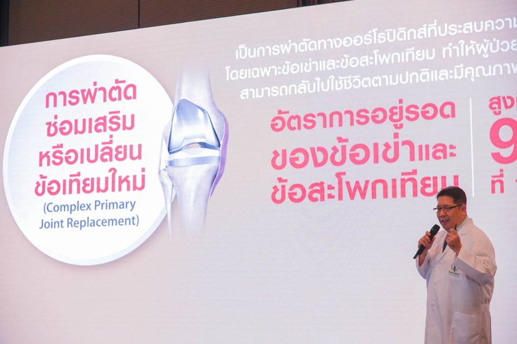 นพ. สุรพจน์ เมฆนาวิน แพทย์เฉพาะทางด้านศัลยศาสตร์กระดูกและข้อ การผ่าตัดเปลี่ยนข้อเทียม โรงพยาบาลบำรุงราษฎร์ กล่าวถึงแนวทางการดูแลผู้ป่วยแบบองค์รวมและเฉพาะบุคคล (Seamless Patients Journey and Personalized Care) ซึ่งครอบคลุมตั้งแต่การวินิจฉัยไปจนถึงการฟื้นฟูและติดตามผล เพื่อให้ผู้ป่วยปลอดภัย ฟื้นตัวไว ลดภาวะแทรกซ้อน และลดระยะเวลาการพักฟื้นในโรงพยาบาล ช่วยลดภาระค่าใช้จ่ายและความเครียดของผู้ป่วยได้อย่างมาก ผลลัพธ์ทางคลินิกที่โดดเด่นสะท้อนถึงคุณภาพการรักษา ไม่ว่าจะเป็น อัตราการติดเชื้อบริเวณแผลผ่าตัด เพียง 0.69% (เทียบกับโรงพยาบาลชั้นนำในสหรัฐอเมริกา 1.03%) อัตราการเกิดภาวะลิ่มเลือดอุดตันในหลอดเลือดดำระหว่างการรักษาในโรงพยาบาล อยู่ที่ 0.40% (เทียบกับโรงพยาบาลชั้นนำในสหรัฐอเมริกา 1.62%) และ อัตราการกลับมาผ่าตัดซ้ำภายใน 30 วัน อยู่ที่ 0% (เทียบกับโรงพยาบาลชั้นนำในสหรัฐอเมริกา 1.18%) นอกจากนี้ ทางศูนย์ฯ ยังมีเป้าหมายให้ผู้ป่วยสามารถลุกเดินด้วยตนเองโดยใช้อุปกรณ์ช่วยเดินในระยะทางอย่างน้อย 15 เมตร ภายใน 3 วันหลังการผ่าตัด ซึ่งทั้งหมดนี้แสดงให้เห็นถึงความมุ่งมั่นในการคืนคุณภาพชีวิตที่ดีที่สุดให้กับผู้ป่วยได้อย่างยั่งยืน