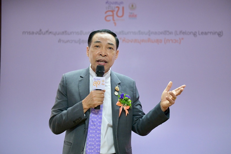 นายธนากร ดอนเหนือ อธิบดีกรมส่งเสริมการเรียนรู้ กระทรวงศึกษาธิการ กล่าวว่า กรมส่งเสริมการเรียนรู้ (สกร.) เดินหน้ายกระดับคุณภาพการเรียนรู้ของประชาชนทุกช่วงวัย การให้ห้องสมุดประชาชน “เฉลิมราชกุมารี” ในสังกัดนำร่อง 30 แห่ง ร่วมพัฒนาและเสริมศักยภาพ ให้เป็น “พื้นที่เติมสุข (ภาวะ) สำหรับคนทุกวัย” สอดรับภารกิจหลักของกรมฯ ในการส่งเสริมการเรียนรู้ตลอดชีวิต ควบคู่ไปกับการสร้างเสริมสุขภาวะที่ดีทั้ง 4 มิติ ทั้งกาย ใจ สังคม และปัญญา ท่านอธิบดีฯ เน้นย้ำว่า การทำงานในครั้งนี้มุ่งเน้นการเรียนรู้ที่มีคุณภาพ พร้อมส่งเสริมสุขภาพที่ดีอย่างรอบด้าน ด้วยความร่วมมือ สสส. บรรณารักษ์และครู กศน. ที่เข้าร่วมโครงการได้รับการอบรมพัฒนาศักยภาพ รวมถึงสนับสนุนเครื่องมือและสื่อองค์ความรู้ที่ปรับให้เข้ากับบริบทของแต่ละพื้นที่ ซึ่งเป็นประโยชน์อย่างยิ่งในการทำงาน โดยเฉพาะประเด็น “บุหรี่ไฟฟ้า” ที่เป็นปัญหาเร่งด่วน สื่อที่ได้รับมาช่วยให้การสื่อสารกับกลุ่มเป้าหมาย ที่เป็นเด็กเยาวชน และคนในชุมชน มีประสิทธิภาพมากยิ่งขึ้น