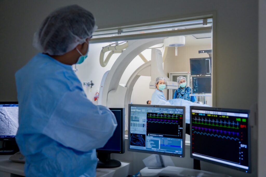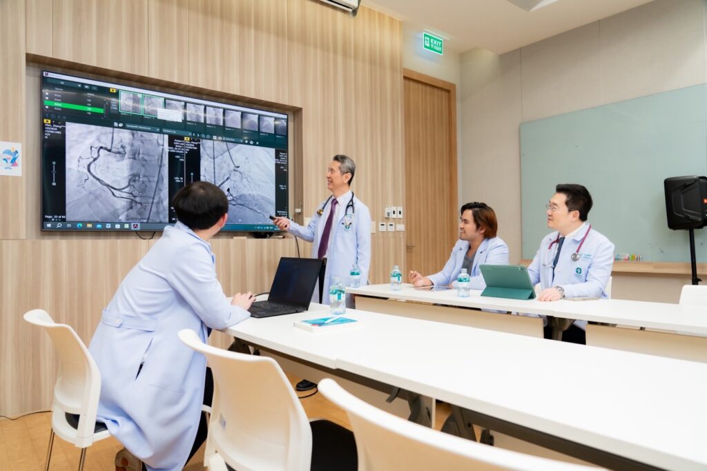 สำหรับการตรวจคัดกรองหัวใจที่สามารถช่วยให้พบความผิดปกติได้ตั้งแต่เนิ่น ๆ โดยแพทย์จะเริ่มจากการประเมินความเสี่ยงรายบุคคล (Heart Risk Assessment) เช่น การเจาะเลือดเพื่อหาปัจจัยเสี่ยง หรือตรวจเอกซเรย์คอมพิวเตอร์เพื่อวัดปริมาณแคลเซียมในหลอดเลือดหัวใจ (Coronary Artery Calcium Score) รวมถึงการตรวจสมรรถภาพหัวใจขณะออกกำลังกายบนสายพาน (Exercise Stress Test) หากพบความผิดปกติ แพทย์จะพิจารณาตรวจเพิ่มเติม เช่น การฉีดสีหลอดเลือดหัวใจด้วยเอกซเรย์คอมพิวเตอร์ (CTA Coronary Artery) หรือการสวนหัวใจฉีดสี (Coronary Angiogram) เพื่อประเมินความรุนแรงและวางแผนรักษาอย่างเหมาะสมโดยทีมแพทย์ผู้เชี่ยวชาญ และหากตรวจพบความเสี่ยงตั้งแต่เนิ่น ๆ ก็สามารถวางแผนควบคุมหรือรักษาได้อย่างมีประสิทธิภาพ ลดโอกาสเกิดเหตุการณ์เฉียบพลันได้อย่างมาก