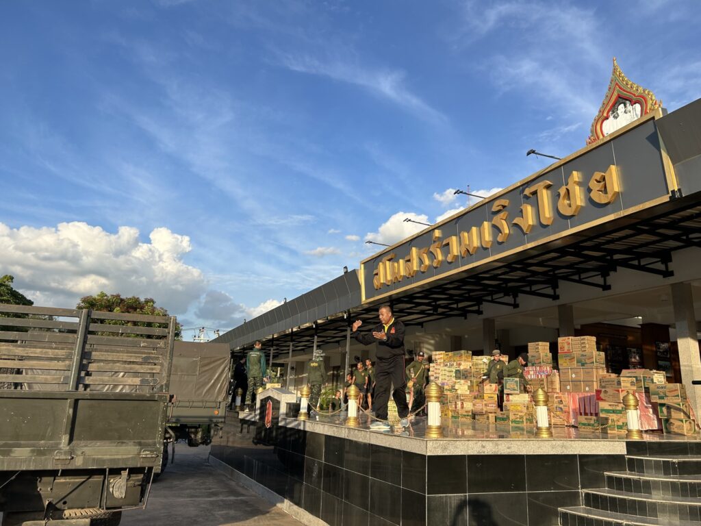 ในการร่วมส่งมอบอาหารแห้งและของใช้ต่างๆ เช่น บะหมี่กึ่งสำเร็จรูป น้ำพริก ปลากระป๋อง ยากันยุง กางเกง ถุงเท้า ให้กับเหล่าทหาร โดยมี พลโท บุญสิน พาดกลาง แม่ทัพภาคที่ 2 กองบัญชาการกองทัพภาคที่ 2 ค่ายสุนารี อ.เมือง จ.นครราชสีมา, พลตรี อรรถชัย รักษาศิลป์ ผู้บัญชาการมณฑลทหารบกที่ 21 และ ผศ.อารีรัตน์ รักษาศิลป์ ประธานสมาคมแม่บ้านทหารบก สาขามณฑลทหารบกที่ 21 ร่วมรับมอบ เมื่อวันที่ 15 มิถุนายน 2568 ณ ค่ายสุนารี อ.เมือง จ.นครราชสีมา