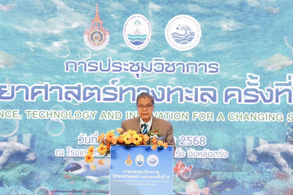 วันที่ 25 มิถุนายน 2568 ณ โรงแรมเรือรัษฎา อำเภอเมือง จังหวัดตรัง ในการนี้ นายทรงกลด สว่างวงศ์ ผู้ว่าราชการจังหวัดตรัง ให้เกียรติกล่าวต้อนรับประธานและผู้เข้าร่วมประชุมฯ พร้อมชื่นชมสนับสนุนการจัดงาน โดย ดร.ปิ่นสักก์ สุรัสวดี อธิบดีกรมทรัพยากรทางทะเลและชายฝั่ง กล่าวว่า ในฐานะเจ้าภาพร่วมจัดการประชุมวิชาการวิทยาศาสตร์ทางทะเล ครั้งที่ 8 ถือเป็นการเปิดโอกาสให้คณาจารย์ นักวิจัย นิสิต นักศึกษา หน่วยงานภาครัฐและภาคเอกชน ตลอดจนประชาชนผู้สนใจทั่วไป ได้มีเวทีในการนำเสนอผลงานทางวิชาการ รวมถึงแลกเปลี่ยนองค์ความรู้และประสบการณ์ในงานวิจัยด้านวิทยาศาสตร์ทางทะเล นวัตกรรม และเทคโนโลยีทางทะเล เพื่อการพัฒนาที่ยั่งยืน รวมถึงการจัดกิจกรรมเวทีการเสวนาที่เกี่ยวกับการอนุรักษ์ วิจัย ฟื้นฟู และพัฒนาทรัพยากรทางทะเลและชายฝั่ง มากกว่า 10 หัวข้อ จากวิทยากรผู้ทรงคุณวุฒิในหลายภาคส่วนและหลากหลายสาขาวิชา รวมทั้งการนำเสนอผลงานวิชาการภาคโปสเตอร์ และภาคบรรยาย โดยแบ่งออกเป็น 4 หัวข้อ เพื่อให้ครอบคลุมในทุกมิติของงานวิจัยด้านทรัพยากรทางทะเลและชายฝั่ง ทั้งนี้ เพื่อเป็นการเตรียมความพร้อมรับมือกับ“วิกฤติสามประการของโลก” หรือ “Triple Planetary Crisis” ซึ่งมนุษยชาติกำลังเผชิญอยู่ ได้แก่ 1) การเปลี่ยนแปลงสภาพภูมิอากาศ 2) การสูญเสียความหลากหลายทางชีวภาพ และ 3) ปัญหามลพิษและของเสีย ซึ่งการแก้ไขปัญหาเหล่านี้ จำเป็นอย่างยิ่งที่จะต้องอาศัยการทำงานแบบบูรณาการร่วมกันของทุกภาคส่วน ทั้งภาครัฐ ภาคเอกชน องค์กรอิสระ ท้องถิ่น ชุมชน และประชาชน เพื่อเร่งดำเนินมาตรการต่าง ๆ ในการแก้ไขปัญหาให้เห็นผลอย่างเป็นรูปธรรมและเกิดความยั่งยืน