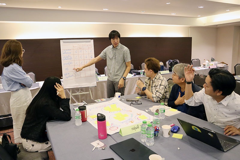 โดยมี ผศ.ดร.อดิศร จันทรสุข คณบดีคณะวิทยาการเรียนรู้และศึกษาศาสตร์ มหาวิทยาลัยธรรมศาสตร์ และทีมที่ปรึกษา ชี้แจงการจัดทำโครงงานกลุ่ม และนำเสนอโจทย์ในการจัดทำโครงงานกลุ่มพร้อมคำแนะนำแก่ผู้เข้าอบรม บยสส. รุ่นที่ 4 ทั้งนี้ ศ.คลินิก นพ.สุวัฒน์ เบญจพลพิทักษ์ เป็นตัวแทนผู้เข้าอบรม บยสส. รุ่นที่ 4 มอบของที่ระลึกและถ่ายภาพร่วมกับทีมที่ปรึกษา