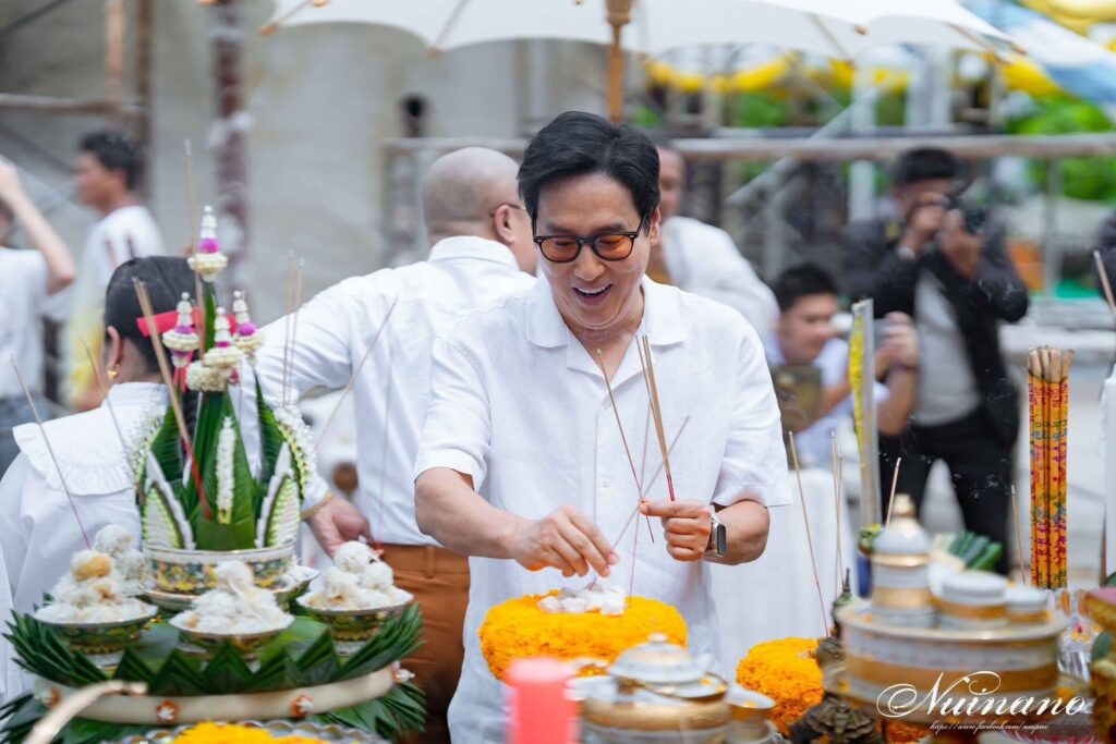“นอกจากจะเป็นลูกศิษย์แล้ว อำเภอละหานทรายก็อยู่ในจังหวัดบุรีรัมย์ ก็เป็นบ้านเกิดของเราเอง เราจะทำยังไงให้วัดเจริญขึ้นมากกว่านี้ เราก็ใช้ความรู้ที่เราทำรายการที่ไปถ่ายวัดทั่วประเทศ โดยวัดที่มีแลนด์มาร์คที่มีพระองค์ใหญ่ สามารถดึงดูดให้ผู้คนเข้ามาในวัดมากขึ้น และจะทำให้เศรษฐกิจรอบวัด เจริญมากยิ่งขึ้น เราก็เลยอยากจะทำให้เกิดความสำเร็จ และมากกว่าความศรัทธา ก็คือทำให้ประชาชนมีกินมีใช้ ให้กลับมารุ่งเรืองเหมือนตอนที่หลวงปู่ท่านยังอยู่ อยากเชิญชวนให้ทุกคนมาสร้างหลวงปู่สุข สุขที่แปลว่าความสุข มาร่วมบุญใหญ่ในครั้งนี้กันนะครับ”