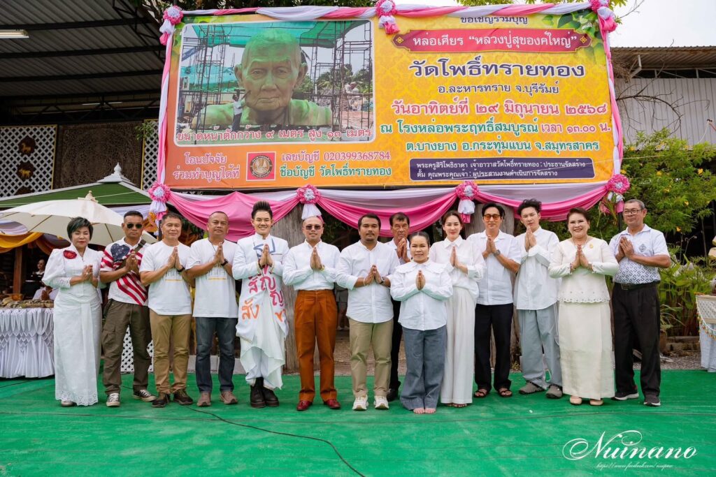 ด้าน “ตุ๊กกี้ สุดารัตน์” เป็นตัวแทนของเพื่อนดาราได้เผยถึงความรู้สึกหลังจากได้ร่วมเป็นส่วนนึงในการหล่อเศียรหลวงปู่สุขในครั้งนี้ว่า “ตอนแรกที่น้องตั้มชวน ก็คิดอยู่แล้วว่าเราตั้งใจจะมาร่วมบุญใหญ่ แต่พอมาเจอสถานที่ แล้วเราก็ขนลุกมาก แต่สิ่งหนึ่งที่เราอยากจะพูด ความตั้งใจของน้องตั้ม ใจน้องใหญ่มาก เราก็อยากให้ทุกอย่างสำเร็จ จริงๆแล้วทุกอย่างขึ้นอยู่กับความเชื่อ เพราะพอเราเชื่อแล้วเราจะศรัทธา ทุกสิ่งทุกอย่างจะเกิดบารมี บารมีนั้นจะสร้างปาฏิหาริย์ให้กับตั้ม รวมถึงพี่น้องชาวละหานทราย จังหวัดบุรีรัมย์ และบุญครั้งนี้ ตั้มไม่สามารถทำคนเดียวได้ อยากเชิญชวนประชาชนทั่วทั้งประเทศ ถ้าท่านรับทราบข่าวนี้ เชิญชวนให้มาร่วมบุญกันได้ตั้งแต่วันนี้เป็นต้นไป”