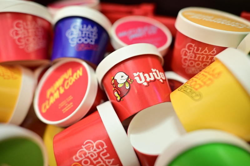 หนึ่งในไฮไลต์ของปีนี้ คือเมนูสุดสร้างสรรค์ Clam & Corn ที่เกิดจากความร่วมมือของ Guss Damn Good กับแบรนด์ที่อยู่คู่คนไทยมากว่า 46 ปี อย่าง บริษัท ผลิตภัณฑ์อาหารกว้างไพศาล จำกัด (มหาชน) ภายใต้แบรนด์ “ปุ้มปุ้ย” ตอกย้ำภาพลักษณ์ผู้นำตลาดปลากระป๋องปรุงรส หอยลายทอดปรุงรส อาหารพร้อมทานและพร้อมปรุง ที่มาพร้อมคอนเซ็ปต์ “The Flavour of Joy อร่อยที่รอยยิ้ม” เปิดมิติใหม่ของความอร่อย กับรสชาติที่ทุกคนควรลอง เมื่อความกล้าคิดนอกกรอบของไอศกรีมคราฟต์มาผสานกับวัตถุดิบไทย กลายเป็นประสบการณ์แห่งรสชาติที่ทั้งแปลกใหม่ และเต็มไปด้วยความทรงจำ นอกจากนี้ยังมีอีก 9 รสชาติจากแบรนด์ไทยที่น่าตื่นเต้นไม่แพ้กัน ซึ่งแต่ละรสชาติผ่านการทดลองและพัฒนาอย่างพิถีพิถัน จนกลายเป็นความอร่อยใหม่ต้องลอง