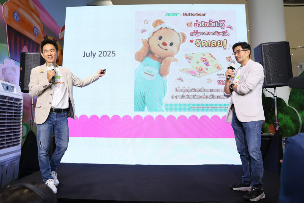นายนิธิพัทธ์ ประวีณวงศ์วุฒิ ผู้อำนวยการฝ่ายการตลาด บริษัท เอเซอร์ คอมพิวเตอร์ จำกัด กล่าวว่า แล็ปท็อปรุ่นพิเศษ “Acer x Butterbear Aspire Lite 15 Limited edition” ได้รับการออกแบบภายใต้แนวคิดที่ผสานประสิทธิภาพการใช้งานเข้ากับอารมณ์ความรู้สึกเชิงบวก เพื่อสร้างประสบการณ์ที่แตกต่างให้กับผู้ใช้ โดยมีแรงบันดาลใจจาก “น้องเนย” ที่เป็นที่รักของคนรุ่นใหม่ เขาคือเพื่อนแท้ที่เติบโตไปด้วยกัน สื่อถึงความจริงใจ อ่อนโยน ซุกซนและเป็นธรรมชาติ ซึ่งเอเซอร์มองเห็นคุณค่าทางอารมณ์เหล่านี้ และถ่ายทอดออกมาอย่างตั้งใจในทุกองค์ประกอบของผลิตภัณฑ์ ไม่ว่าจะเป็นดีไซน์ ฟังก์ชัน ไปจนถึงรายละเอียดเล็ก ๆ ที่สะท้อนตัวตนของน้องเนยได้อย่างชัดเจน แล็ปท็อปรุ่นนี้จึงไม่เพียงแค่ตอบโจทย์ด้านเทคโนโลยี แต่ยังส่งต่อความอบอุ่นและความผูกพันของน้องเนย ผ่านตัวกลาง คือ เอเซอร์ ไปยัง มัมหมี และพ่อหมี ได้อย่างลึกซึ้ง สำหรับ “Acer x Butterbear Aspire Lite 15 Limited edition” นี้ผลิตมาจำนวนจำกัด เพื่อมอบให้น้องเนยได้ใช้เรียนหนังสือ อีกทั้ง มัมหมี และพ่อหมี ที่ชื่นชอบโดยเฉพาะ
