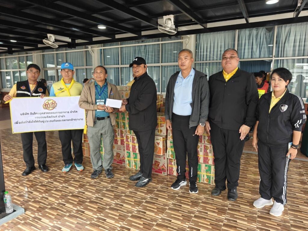 โดยทีมผู้บริหาร บริษัท วันไทยอุตสาหกรรมการอาหาร จำกัด ส่งมอบ ยำยำ จัมโบ้, ยำยำ คัพ จำนวน 100 ลัง พร้อมเงินบริจาค 10,000 บาท ประสานผ่าน คุณ ชินานันท์ บุญศิริยะ ผู้จัดการแผนกการตลาด ถึง พลตรี ชยพณัฐ วิริรัตน์ รองเจ้ากรมกิจการพลเรือนทหาร กองบัญชาการกองทัพไทย เพื่อช่วยเหลือผู้ประสบภัยเร่งด่วน ในครั้งนี้🙏
