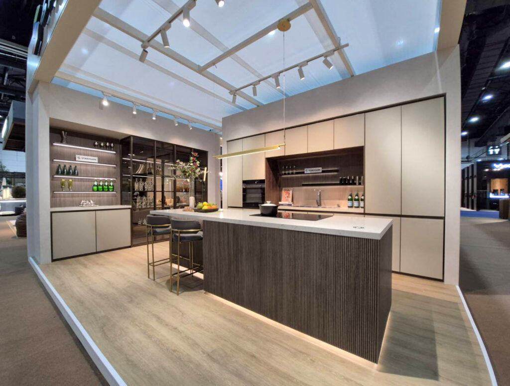 โดยในปี 2568 นี้ สตาร์มาร์ค จะตอกย้ำความเป็นแบรนด์ชั้นนำ ด้วยการอวดโฉม Infinite Kitchen Design ชุดครัวสไตล์โมเดิร์น รุ่น ARLANDO (ออแลนโด้) ดีไซน์เหนือระดับและเรียบหรู สไตล์การออกแบบอย่างไม่มีที่สิ้นสุดจากทางสตาร์มาร์ค ผสานความเรียบง่ายและความล้ำสมัยเข้าด้วยกัน จุดเด่นคือ Island ครัวยาว 3 เมตร ปิดผิวลามิเนตลายไม้ Umber Oregon Teak ที่เซาะร่อง เผยให้เห็นแกนไม้สีดำ และตู้กระจกใสสีชาทองรอบตัวเพิ่มความโปร่งโล่ง พร้อมอุปกรณ์อำนวยความสะดวกในการใช้งาน อาทิ  Automatic Power Plug และ Wireless Charger ที่ฝังบนเคาน์เตอร์ท้อปหินควอทซ์ที่ดูแลรักษาง่าย ทนต่อรอยขีดข่วน หน้าบานผลิตด้วยกระจกซาตินพ่นทราย คลุมด้วยโทนสี Copper Gold และ Dark Beige ที่เพิ่มความหรูหราให้ครัวอย่างล้ำลึก