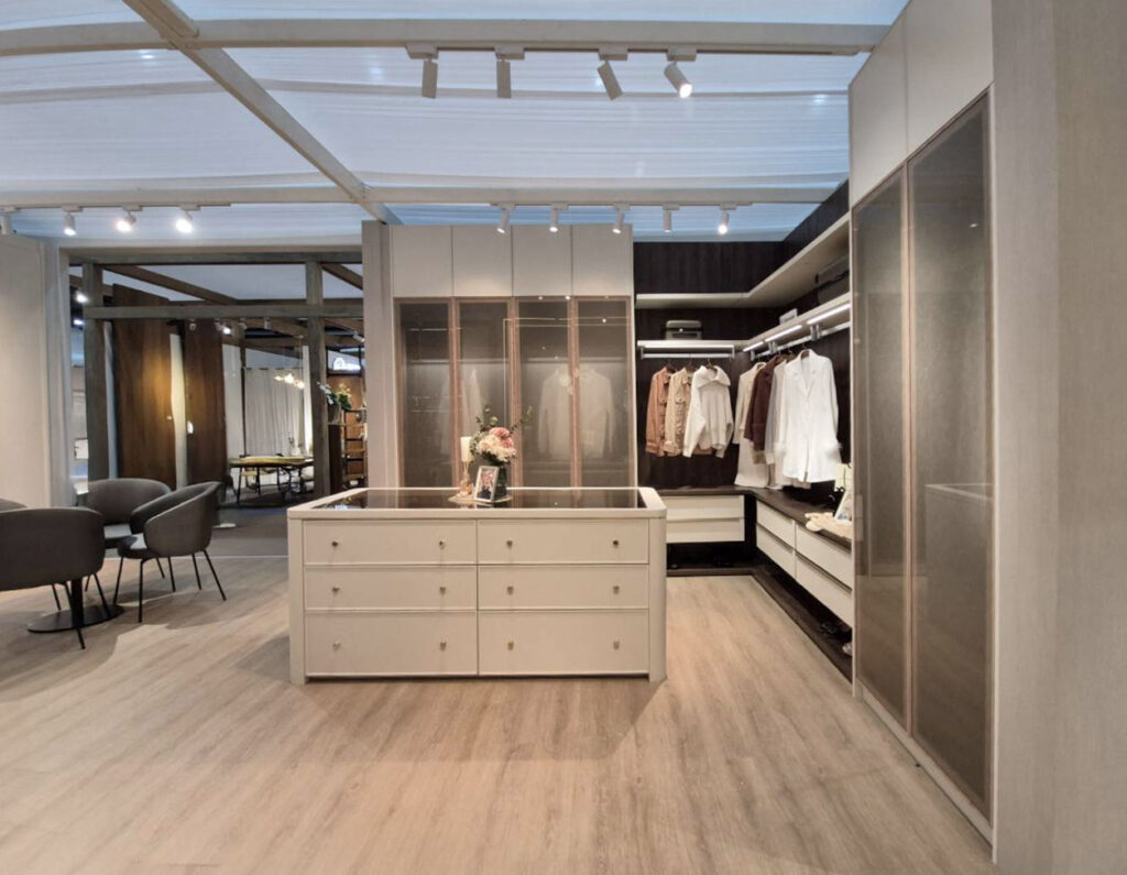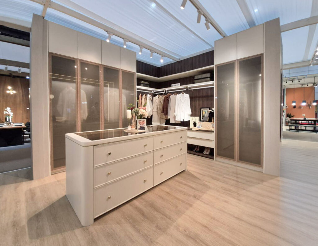 อีกทั้งยังมีไฮไลต์ที่ตอบโจทย์คนรักห้องแต่งตัว ด้วย Interior Closet System จากสตาร์มาร์ค ที่ออกแบบด้วยโทนสีครีมและน้ำตาล ใช้วัสดุพรีเมียม เช่น หน้าบานกระจกลายผ้าไหมเคลือบนิรภัย น้ำหนักเบา บาง แต่มีความแข็งแรงปลอดภัย พร้อมกรอบอลูมิเนียมลายไม้เทคโนโลยี Anodizing ทนทานสนิมและปลวก เสริมด้วยฟังก์ชัน Drawer Safe ลิ้นชักตู้เซฟที่กลมกลืนกับตู้เสื้อผ้า, ระบบไฟ LED เปิด-ปิดอัตโนมัติ และ Closet Island ที่ตอบโจทย์การจัดเก็บเครื่องประดับอย่างเป็นระเบียบ