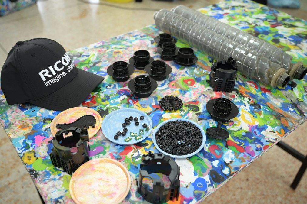 รวมไปถึง Workshop Upcycling เปลี่ยนขยะไร้ค่าเป็นสิ่งของที่มีประโยชน์ ซึ่ง บริษัท ริโก้ (ประเทศไทย) จำกัด ร่วมกับโครงการ Green Road แปรรูปตลับหมึกเปล่าของริโก้ เป็นบล็อกปูพื้น ม้านั่ง และแปรรูปฝาขวดน้ำพลาสติกจากโครงการ “ริโก้แยกแลกบุญ” ที่เก็บฝาขวดจากจุดรับบริจาคของริโก้ ทั่วประเทศ และโรงเรียนสังกัดกรุงเทพมหานครในเขตประเวศ 16 โรงเรียน ส่งต่อเป็นผลิตภัณฑ์ Upcycling 20 ชุด (โต๊ะเก้าอี้นักเรียน 1 ชุด ใช้ 8,000 ฝา) แล้วมอบกลับคืนแก่ชุมชน รวมถึงการผลิตพวงกุญแจจากลูกปัดพลาสติก และทดลองใช้โฟมเหลือทิ้งที่หลอมรวมกับน้ำยาล้างเล็บ (อะซีโตน) เป็น “กาวสูตรพิเศษ” สำหรับหล่อทรายขึ้นรูป เป็นกระถางต้นไม้ เหรียญพระ ตุ๊กตาและของใช้ทดแทนปูนซีเมนต์