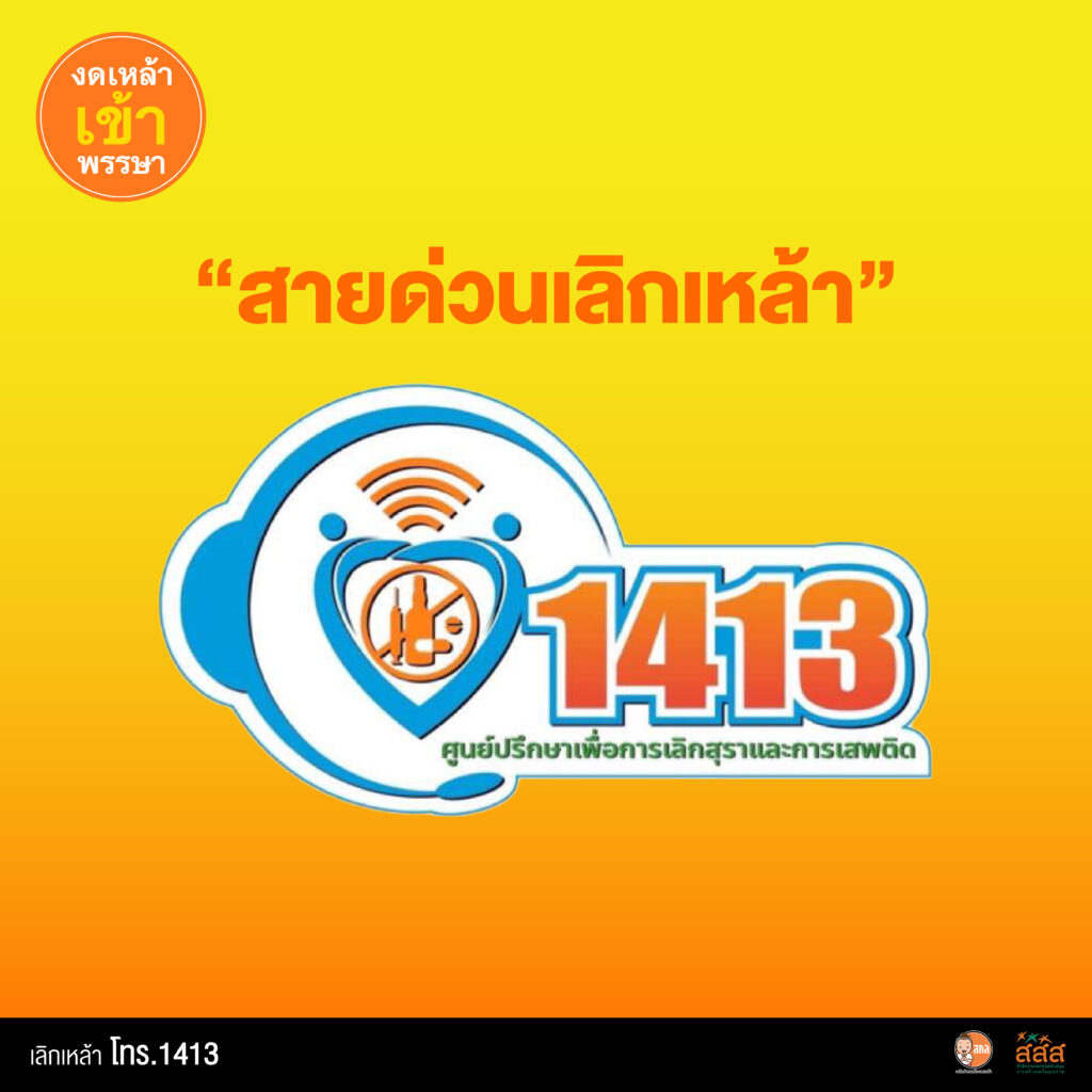 สายด่วนเลิกเหล้า โทร 1413 (ศูนย์ปรึกษาเพื่อการเลิกสุราและการเสพติด) ให้บริการปรึกษา กับผู้เชี่ยวชาญมีประสบการณ์การงดเหล้าผ่านการโทรศัพท์ เหมาะสำหรับคนที่ไม่สะดวกเดินทางแต่อยากรับบริการที่มีผู้สามารถติดตามผล ช่วยให้ข้อมูล แม้เราอยู่ห่างไกล หรือติดภาระจากงานประจำ สายด่วนเลิกเหล้าให้บริการให้คำปรึกษาการเลิกดื่มเครื่องดื่มแอลกอฮอล์และรวมถึงสิ่งเสพติดแก่ประชาชน โดยเฉพาะผู้ที่อยากเลิกดื่ม ให้สามารถ ลด ละ เลิกดื่มได้อย่างถูกต้อง ปลอดภัย ลดผลกระทบต่อสุขภาพ ให้บริการวันจันทร์- ศุกร์ เวลา 08.00-20.00 น. มีนักจิตวิทยาให้บริการ 8 คู่สาย หากให้บริการเต็มทุกคู่สาย หรือนอกเวลาทำการสามารถฝากเบอร์ให้ โทรกลับได้และช่วงเข้าพรรษา 3 เดือนของทุกปี ได้ขยายเวลาให้บริการทุกวันไม่เว้นวันหยุด เพื่อตอบสนอง การรับบริการที่มีจำนวนมากกว่าช่วงเวลาปกติมากกว่าเท่าตัว