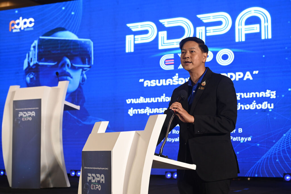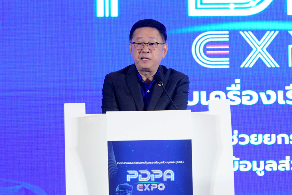 นายประเสริฐ จันทรรวงทอง รองนายกรัฐมนตรีและรัฐมนตรีว่าการกระทรวงดิจิทัลเพื่อเศรษฐกิจและสังคม (ดีอี) ประธานในพิธี กล่าวว่า งาน “PDPA Expo 2025 : มหกรรมส่งเสริมการคุ้มครองข้อมูลส่วนบุคคลและเครือข่าย DPO” ครบเครื่องเรื่อง PDPA ครั้งนี้เป็น “กลไกนโยบายระดับชาติ” ที่ยกระดับมาตรการคุ้มครองข้อมูลของไทยให้รัดกุม โปร่งใส และเป็นมาตรฐานสากล ซึ่งรัฐบาลกำหนดยุทธศาสตร์การคุ้มครองข้อมูลเป็นวาระแห่งชาติ เพื่อสร้างความเชื่อมั่นให้กับประชาชน ธุรกิจ และนักลงทุน ข้อมูลรั่วไหลต้องเป็นศูนย์ (Zero Data Breach) และประเทศไทยต้องก้าวสู่การเป็นผู้นำด้านการคุ้มครองข้อมูลส่วนบุคคลในภูมิภาคอาเซียน หนึ่งในเครื่องมือเชิงยุทธศาสตร์ที่รัฐบาลนำมาใช้คือ ศูนย์เฝ้าระวังการละเมิดข้อมูลส่วนบุคคล (PDPC Eagle Eye) ซึ่งมีภารกิจสำคัญในการเร่งตรวจสอบ ค้นหา และเฝ้าระวังการรั่วไหลของข้อมูลในทุกมิติ โดยมุ่งระงับยับยั้งความเสียหายที่อาจเกิดขึ้นให้ได้อย่างทันท่วงที พร้อมทำงานเชิงรุกในการสร้างความตระหนักรู้ด้านการคุ้มครองข้อมูลส่วนบุคคล ร่วมกับหน่วยงานที่เกี่ยวข้องและเครือข่ายเจ้าหน้าที่คุ้มครองข้อมูลส่วนบุคคล หรือ Data Protection Officer (DPO) ทั่วประเทศ
