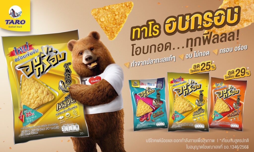 “ทาโร” ตอกย้ำความอร่อยที่มีประโยชน์ เปิดตัวขนมทางเลือกใหม่ เอาใจสายเฮลท์ตี้ “ปลาสวรรค์ ตราทาโร อบกรอบ สูตรลดโซเดียม” ในรูปแบบสามเหลี่ยม กรอบ อร่อย เต็มคำ มาพร้อม 2 รสชาติ “ทาโร อบกรอบ รสเข้มข้น” และ “ทาโร อบกรอบ รสบาร์บีคิว” พร้อมส่งกิจกรรม “ทาโร อบกรอบ กรอบสนั่นลั่นโรงเรียน” เดินสายปลุกพลังเยาวชนรักษ์โลก ปลูกฝังการแยกขยะอย่างถูกวิธี พร้อม“พี่หมีคริสปี้” ออกตระเวนให้ความสุข สนุกสนาน ส่งเสริมการเรียนรู้ 45 โรงเรียน ทั่วกรุงเทพฯ และปริมณฑล
