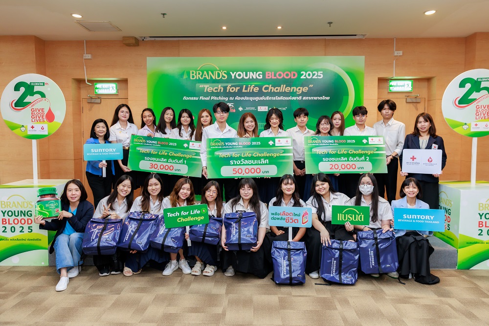 28 สิงหาคม 2568 – ซันโทรี่ เบเวอเรจ แอนด์ ฟู้ด (ประเทศไทย) ผู้นำตลาดอาหารเสริมสุขภาพภายใต้ตราผลิตภัณฑ์แบรนด์ (BRAND’S) ในประเทศไทยและอินโดไชน่า ผู้ผลิตและจัดจำหน่ายแบรนด์ซุปไก่สกัด ประกาศผลการแข่งขัน “แบรนด์…พลังเลือดใหม่ ต่อพลังชีวิต 2568: Tech for Life Challenge” เวทีให้นิสิตนักศึกษาประกวดไอเดียสร้างสรรค์สื่อดิจิทัลเพื่อกระตุ้นการบริจาคโลหิต เนื่องในโอกาสครบรอบ 25 ปี ของโครงการ ‘แบรนด์…พลังเลือดใหม่ต่อพลังชีวิต’ (BRAND’S Young Blood) ภายใต้โจทย์ “เทคโนโลยีจะช่วยดึงดูด และ/หรือ อำนวยความสะดวกให้เยาวชนไทยมาบริจาคโลหิตมากขึ้นได้อย่างไร”