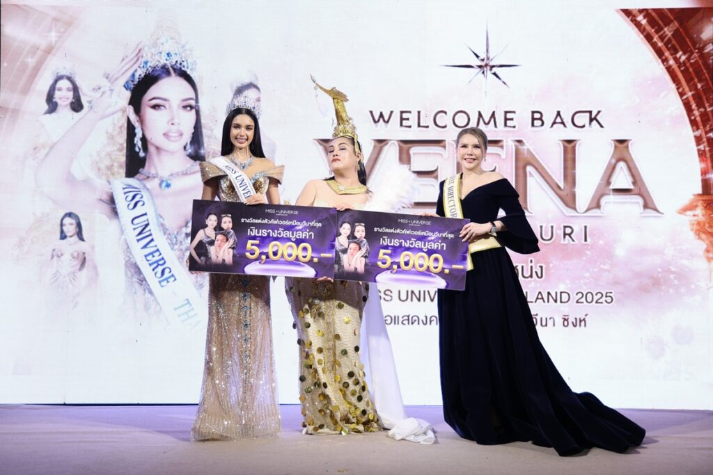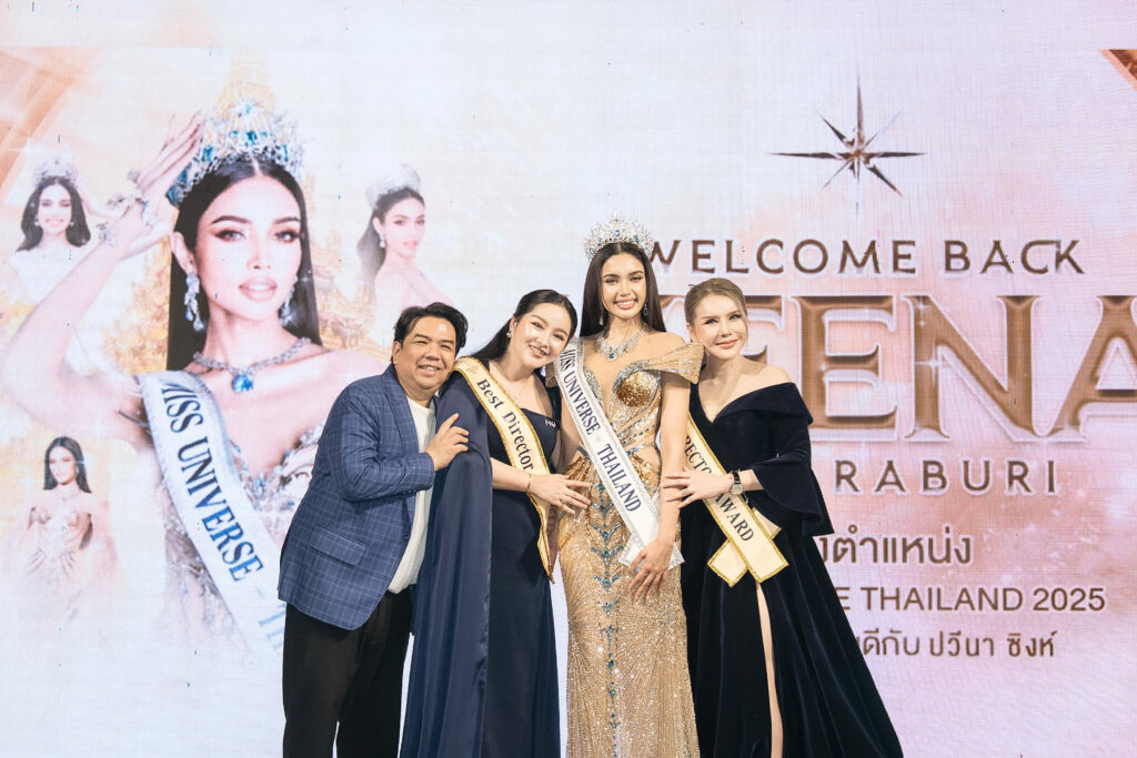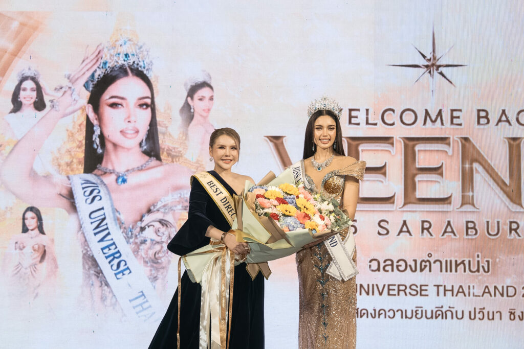 ขณะที่ตัวแทนผู้จัดงานอย่าง “มอร์ฟีน สรินทร์ลดา” ผู้อำนวยการกองประกวด MISS UNIVERSE SARABURI 2025 เปิดใจว่า “การที่วีนาได้คว้ามงกุฎมิสยูนิเวิร์สตามฝันของตัวเองที่พยายามมาถึง 8 ปี และมาสำเร็จด้วยการเป็นตัวแทนของชาวสระบุรีเป็นสิ่งที่ยิ่งใหญ่มาก พวกเราทีมงานสระบุรีที่เริ่มเข้ามาในวงการนางงามเมื่อ 3 ปีก่อนจนมาถึงวันนี้ภูมิใจมากๆ ที่ได้รับการต้อนรับและความร่วมมือจากทุกภาคส่วนในจังหวัดงานที่ยิ่งใหญ่ครั้งนี้จึงเกิดขึ้นได้ ขอบคุณวีนาที่มอบความสุขให้กับชาวสระบุรีและแฟนคลับทุกกคนด้วย” มอร์ฟีน สรินทร์ลดา กล่าว