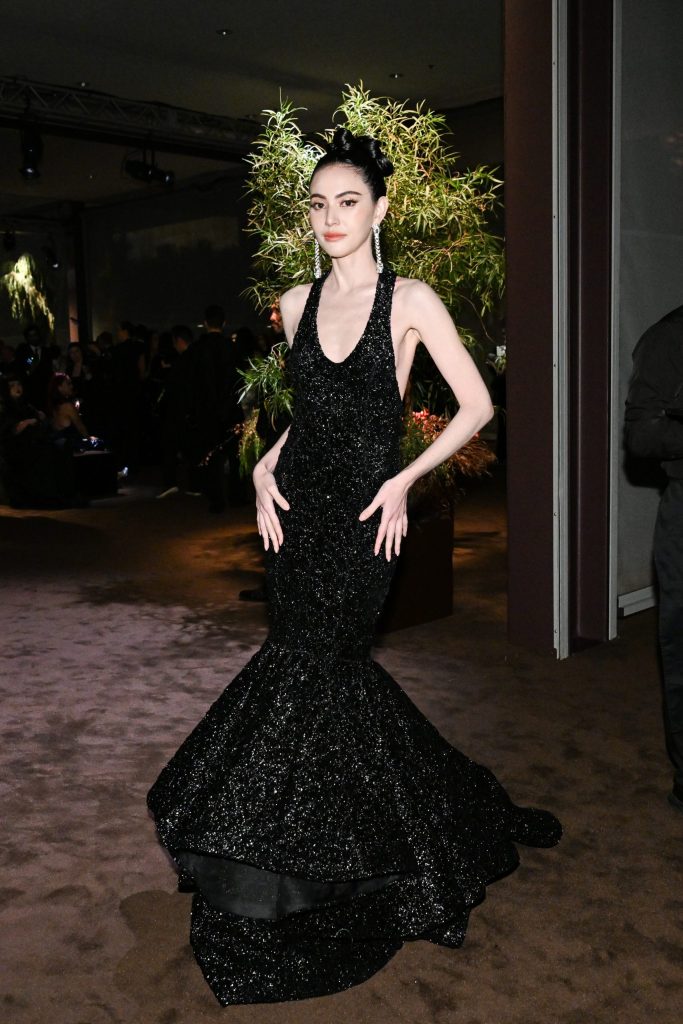 “ดาวิกา” ถ่ายทอดลุคสวยสะกดในชุดเดรสยาวสีดำรัดรูปที่ตัดเย็บขึ้นเป็นพิเศษโดย Gucci ดีไซน์ของชุดที่มีเลเยอร์ช่วงชายกระโปรงพองเป็นชั้นเพิ่มความสง่างาม จับคู่กับรองเท้าส้นสูงหนังสีดำ เติมเต็มลุคด้วยกระเป๋าคลัตช์ผ้าไหมซาตินสีดำเงาและต่างหูแววาว ผสมผสานความหรูหราและความร่วมสมัยได้อย่างลงตัว