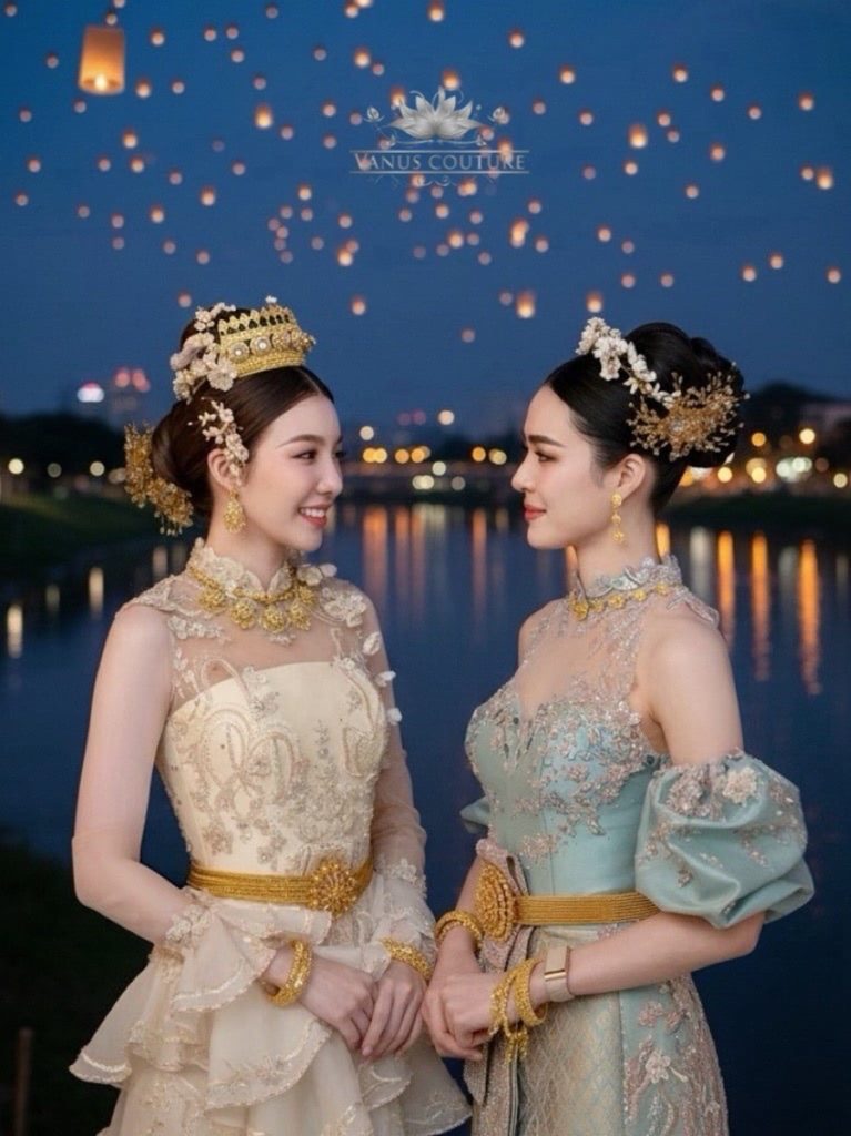 เทศกาลลอยกระทงปีนี้เป็นปีแห่งปรากกฎการณ์ที่คนไทยร่วมใส่ชุดไทยพระราชนิยมกันมากที่สุด เพื่อน้อมถวายความอาลัยให้แด่พระแม่ของแผ่นดิน สมเด็จพระนางเจ้าสิริกิติ์ พระบรมราชินีนาถ พระบรมราชชนนีพันปีหลวง ซึ่งเหล่าคนดังมากมายก็พร้อมใจกันอวดลุคชุดไทยสร้างสีสันให้งานลอยกระทงกันแบบคับคั่ง ซึ่งงานนี้คู่จิ้น “หลิงหลิง” ศิริลักษณ์ คอง และ “ออม” กรณ์นภัส เศรษฐรัตนพงศ์ ก็ร่วมสร้างสันในงาน “Lanna Culture & Sky Lantern 2025” ณ สวนพระพุทธธรรม วัดบ้านปง อ.แม่แตง จ.เชียงใหม่ ในวันที่ 5-6 พฤศจิกายน 2568 ที่ผ่านมา ในลุคชุดไทยจักรพรรดิ และ ชุดไทยประยุกต์ล้านนา ทั้งหมด 4 ชุด ความงดงามที่หลอมรวมความหรูหราแบบไทยร่วมสมัยและวัฒนธรรมล้านนาเอาไว้ด้วยกันอย่างลงตัว ผลงานสุดประณีตที่รังสรรค์ขึ้นเป็นพิเศษโดย ดร.สรรค์ สุดเกตุ ดีไซน์เนอร์และเจ้าของทาง ห้องเสื้อ วนัช กูตูร์ จะมีชุดแบบไหนบ้างไปดูกันเลย