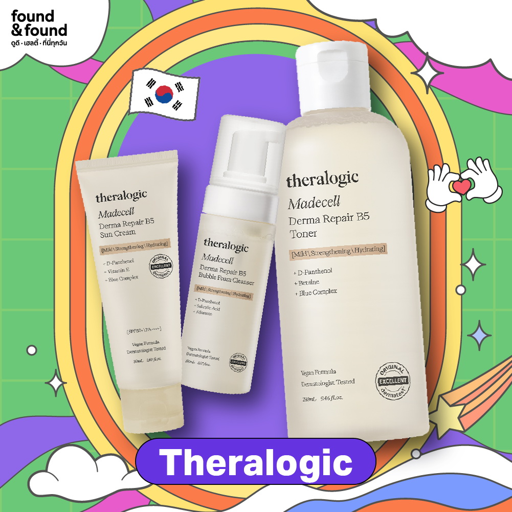 Theralogic สกินแคร์สูตรวีแกนเพื่อผิวแพ้ง่ายโดยเฉพาะ ถูกพัฒนาขึ้นโดยผู้เชี่ยวชาญด้านผิวหนังประเทศเกาหลีมากถึง 60 คน ด้วยการอ้างอิงจากฐานข้อมูลปัญหาผิวกว่า 560,000 เคส เป็นสกินแคร์รูทีน ที่ตอบโจทย์ทุกปัญหาผิวและช่วยปลอบประโลมผิวที่อ่อนแอ พร้อมเสริมเกราะป้องกันให้ผิวแข็งแรงและมีสุขภาพดี ประกอบด้วย 3 ไอเทม ได้แก่ Theralogic Madecell Derma Repair B5 Bubble Foam Cleanser โฟมล้างหน้าสูตรอ่อนโยน Toner Theralogic Madecell Derma Repair B5 Toner โทนเนอร์บูสต์ผิวใสฉ่ำน้ำ เพิ่มความชุ่มชื้นให้ผิวชั้นในถึง 121% และ Theralogic Madecell Derma Repair B5 Sun Cream SPF 50+ PA++++ ครีมกันแดดมิเนอรัล (ฟิสิคัล) ช่วยปรับโทนสีผิวให้ดูกระจ่างใสและสม่ำเสมออย่างเป็นธรรมชาติ