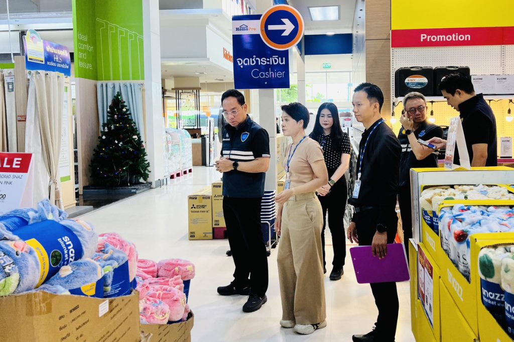 นางสาวอมายาวี ลำโป ผู้จัดการทั่วไป โฮมโปรสาขาหาดใหญ่กาญจนวนิช ผู้แทนบริษัท โฮม โปรดักส์ เซ็นเตอร์ จำกัด (มหาชน) หรือ โฮมโปร ให้การต้อนรับ นายวิทยากร มณีเนตร อธิบดีกรมการค้าภายใน ได้เข้าเยี่ยมชมพื้นที่และติดตามการดำเนินงานของโครงการ “โฮมโปร เมกาโฮม ห่วงใย ร่วมใจฟื้นฟูบ้าน” เพื่อดูรายการสินค้าอุปโภคบริโภคและสินค้าจำเป็นที่นำมาจัดจำหน่ายในราคาพิเศษ สอดรับมาตรการภาครัฐในการลดราคาสินค้าและบริการด้านซ่อมแซมบ้านเรือน รวมถึงบริการซ่อมฟรี! เครื่องใช้ไฟฟ้าจากช่างโฮมโปร เพื่อช่วยบรรเทาภาระค่าใช้จ่ายและสนับสนุนการฟื้นฟูคุณภาพชีวิตของพี่น้องประชาชนในพื้นที่ภาคใต้ที่ได้รับผลกระทบจากสถานการณ์อุทกภัย ให้สามารถกลับมาใช้ชีวิตประจำวันได้อย่างปลอดภัยและเป็นปกติโดยเร็ว