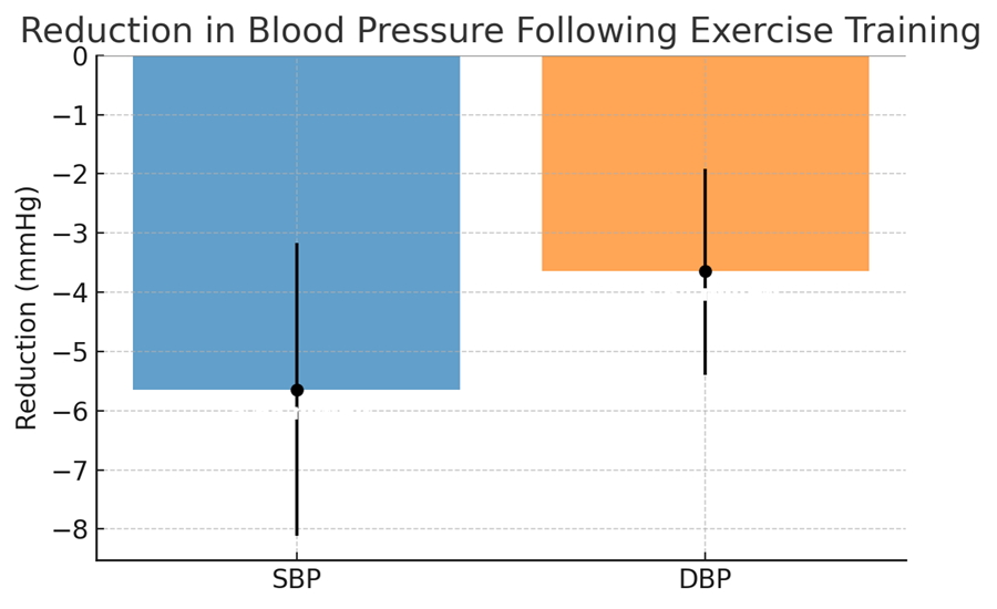 นอกจากเบาหวาน การวิ่งยังเป็นเพื่อนที่ดีของหัวใจและหลอดเลือด การวิ่งสามารถช่วยลดความดันโลหิตได้อย่างชัดเจน จากงาน meta-analysis (การวิเคราะห์อภิมาน) คือ การทบทวนงานวิจัยอย่างเป็นระบบและใช้สถิติเพื่อรวมผลลัพธ์จากงานวิจัยหลายๆ ชิ้นเข้าด้วยกัน เพื่อให้ได้ข้อสรุปที่แม่นยำและน่าเชื่อถือมากขึ้นกว่าการพิจารณางานวิจัยเพียงชิ้นเดียวล่าสุดพบว่า วัยผู้ใหญ่ที่มีความดันโลหิตสูงหรือเสี่ยงต่อความดันสูง เมื่อออกกำลังกายสม่ำเสมอ ความดันตัวบน (SBP – Systolic Blood Pressure) ลดได้ประมาณ 5.65 mmHg และ ความดันตัวล่าง (DBP – Diastolic Blood Pressure) ลดได้ราว 3.64 mmHg ซึ่งเพียงแค่ลดเล็กน้อยก็สามารถลดความเสี่ยงโรคหัวใจและหลอดเลือดได้อย่างมีนัยยะสำคัญ