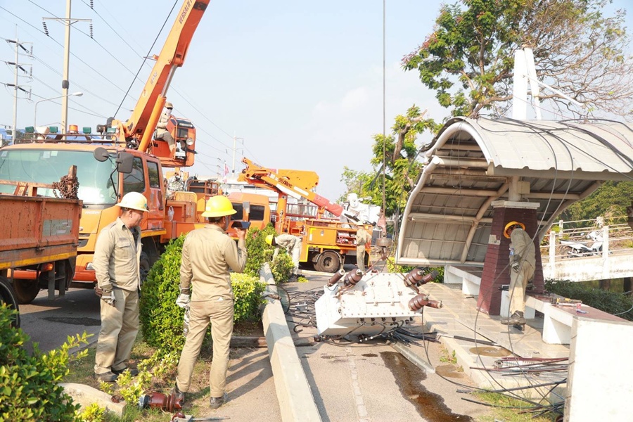 สำหรับการดำเนินงานในขณะนี้ MEA ได้ให้ความสำคัญกับการบรรเทาผลกระทบด้านการเดินทางเป็นลำดับแรก โดยเจ้าหน้าที่ได้เร่งเคลียร์พื้นที่และเคลื่อนย้ายเสาไฟฟ้าที่ล้มกีดขวางทางเข้าออกจนสามารถเปิดเส้นทางให้รถยนต์สามารถสัญจรเข้าออกซอยต่าง ๆ ได้ตามปกติแล้วทุกซอย ในส่วนของการกู้คืนระบบไฟฟ้านั้น MEA ได้บริหารจัดการปรับเปลี่ยนวงจรเพื่อจ่ายไฟคืนให้แก่ประชาชนในพื้นที่ใกล้เคียงไปแล้วบางส่วน และยังคงระดมเจ้าหน้าที่ชุดปฏิบัติการจากการไฟฟ้านครหลวงเขตพื้นที่อื่นเข้ามาสมทบอย่างต่อเนื่องเพื่อเร่งติดตั้งเสาไฟฟ้าและพาดสายจ่ายไฟใหม่ทดแทนส่วนที่เสียหาย โดยเป้าหมายหลักคือการเร่งจ่ายกระแสไฟฟ้าคืนให้แก่ผู้ใช้ไฟฟ้าที่ยังคงได้รับผลกระทบในพื้นที่อีกบางส่วน ให้กลับมาใช้งานได้ตามปกติโดยเร็วที่สุดภายในเวลาเที่ยงคืนของวันนี้