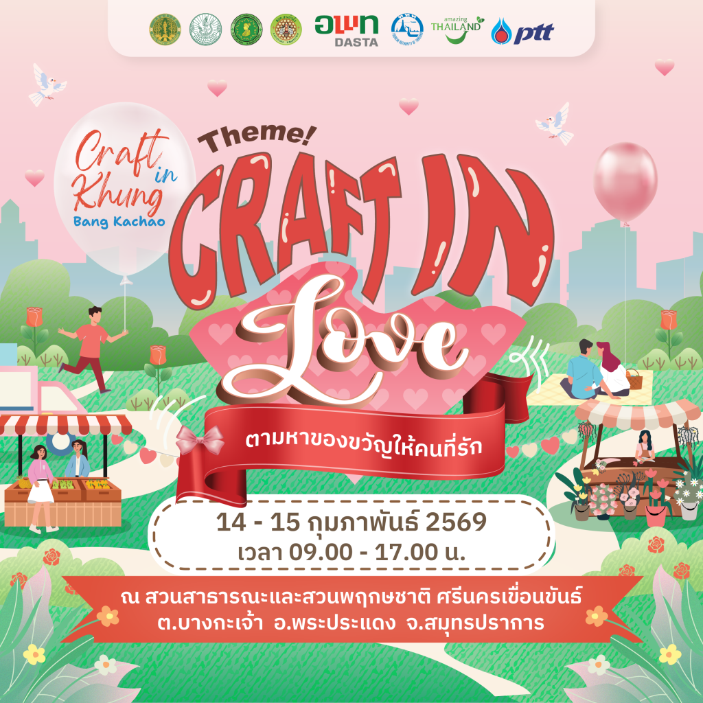 วาเลนไทน์ปีนี้… ชวนคนรักปักหมุดหยุดเวลา บนเส้นทางสายกรีนใกล้กรุง ในงาน Craft in Khung Bang Kachao ในธีม Craft in Love 14–15 กุมภาพันธ์ 2569 เวลา 09.00 – 17.00 น. สวนสาธารณะและสวนพฤกษชาติศรีนครเขื่อนขันธ์ อำเภอพระประแดง จังหวัดสมุทรปราการ